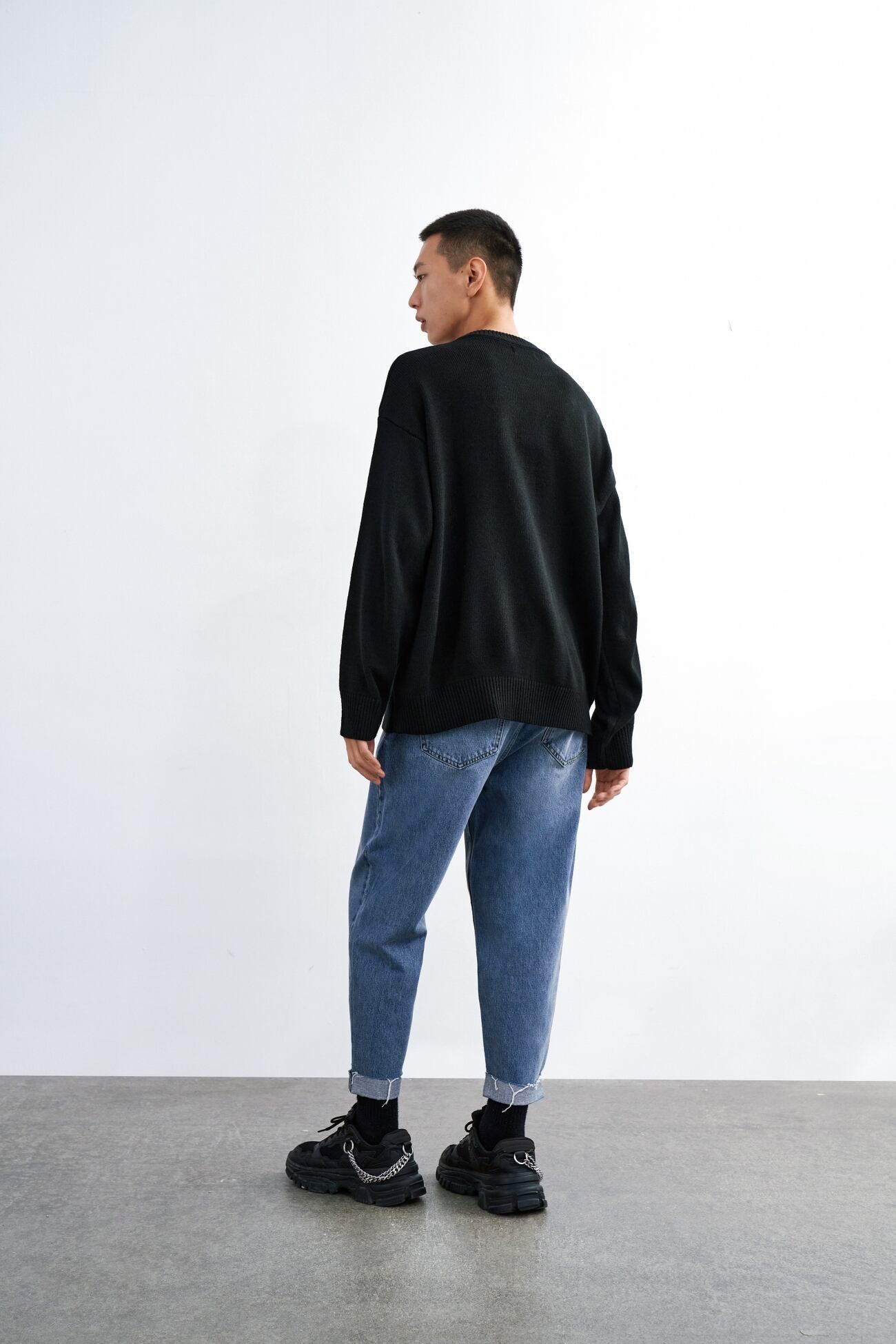 メンズファッションのトレンドにもマッチする、レターデザインのジャガードプルオーバー。アイコニックなデザインとブラックの配色で、どんなコーデにも合わせやすく、気取りすぎないカジュアルさが魅力です。袖の長さは長めで、トップスに合わせたインナーとのレイヤードスタイルも楽しめます。