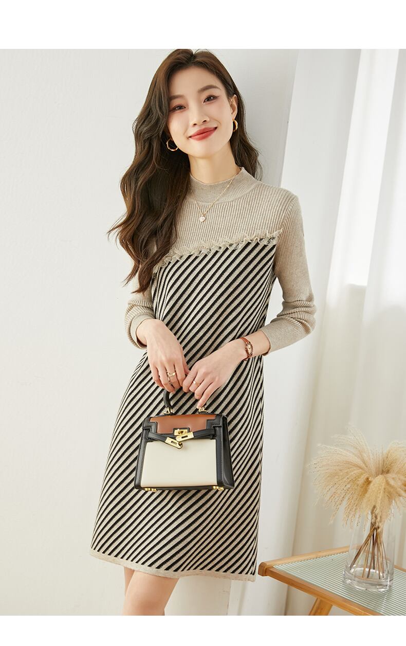 冬 エレガント フレンチ レース モザイク セーター ドレス スストライプ カラーマッチング ニット ドレス 女性 アプリコット ブラック S M L XL ワンピース 膝上 袖あり かわいい 大人可愛い きれいめ シンプル カジュアル 大人 上品 おしゃれ お洒落 大人可愛い 大人女子 キュート 存在感 春 秋 冬 10代 20代 30代 40代 レディース 女性用 女の子 オフィス 学生 通学 デート お出かけ 女子会 休日 パーティー イベント リゾート 旅行 海 普段使い ファッション コーデ | ameiro18