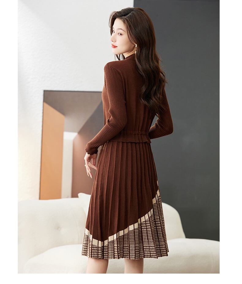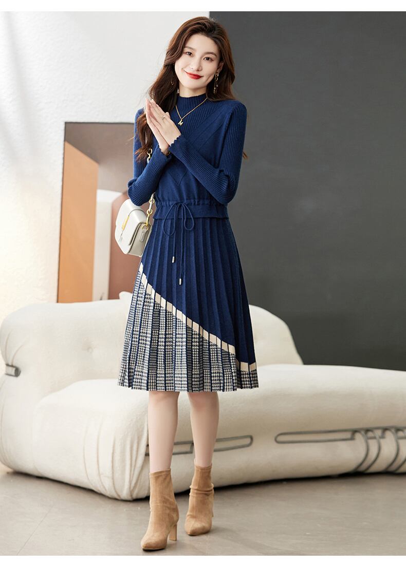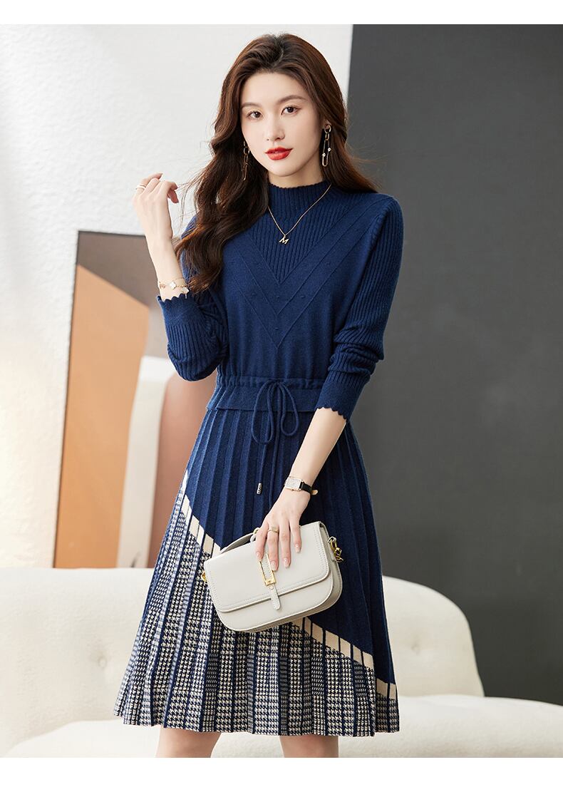 商品名「秋 冬 ネクタイ ウエスト プリーツ ニットドレス」は、おしゃれで可愛らしいニットドレスです。
