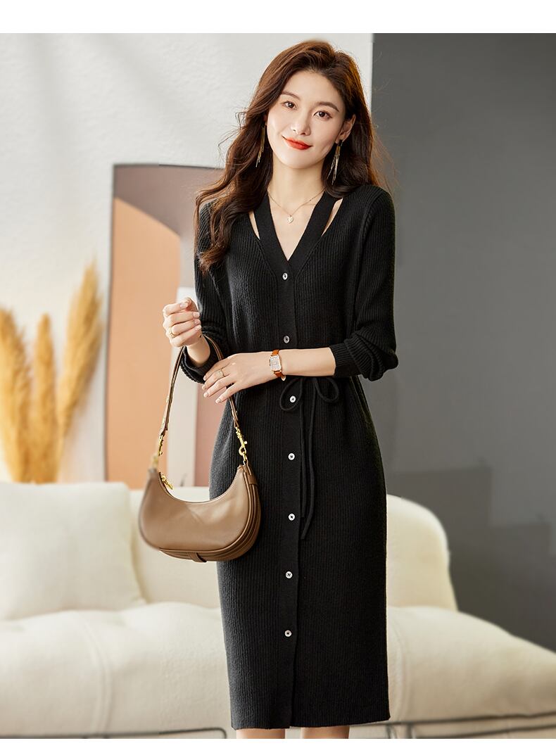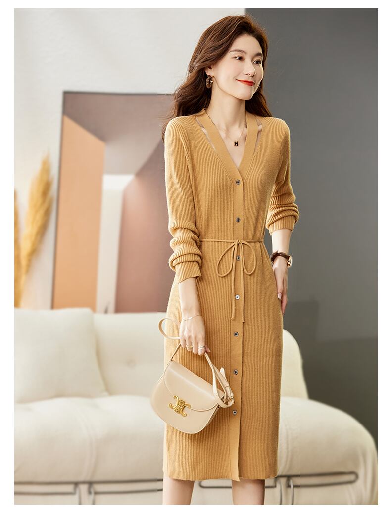 秋冬のファッションにぴったりなインナーニットドレスが登場しました!ウエストラインのセーターとスカートを一体化させたデザインで、ラフにもエレガントにも着こなせます。ピンク、ベージュ、イエロー、ブラックの4色展開で、M~XXLまでのサイズもご用意しました。 膝上丈で、袖ありデザインが寒い季節にもピッタリです。この一枚でおしゃれな装いが完成!