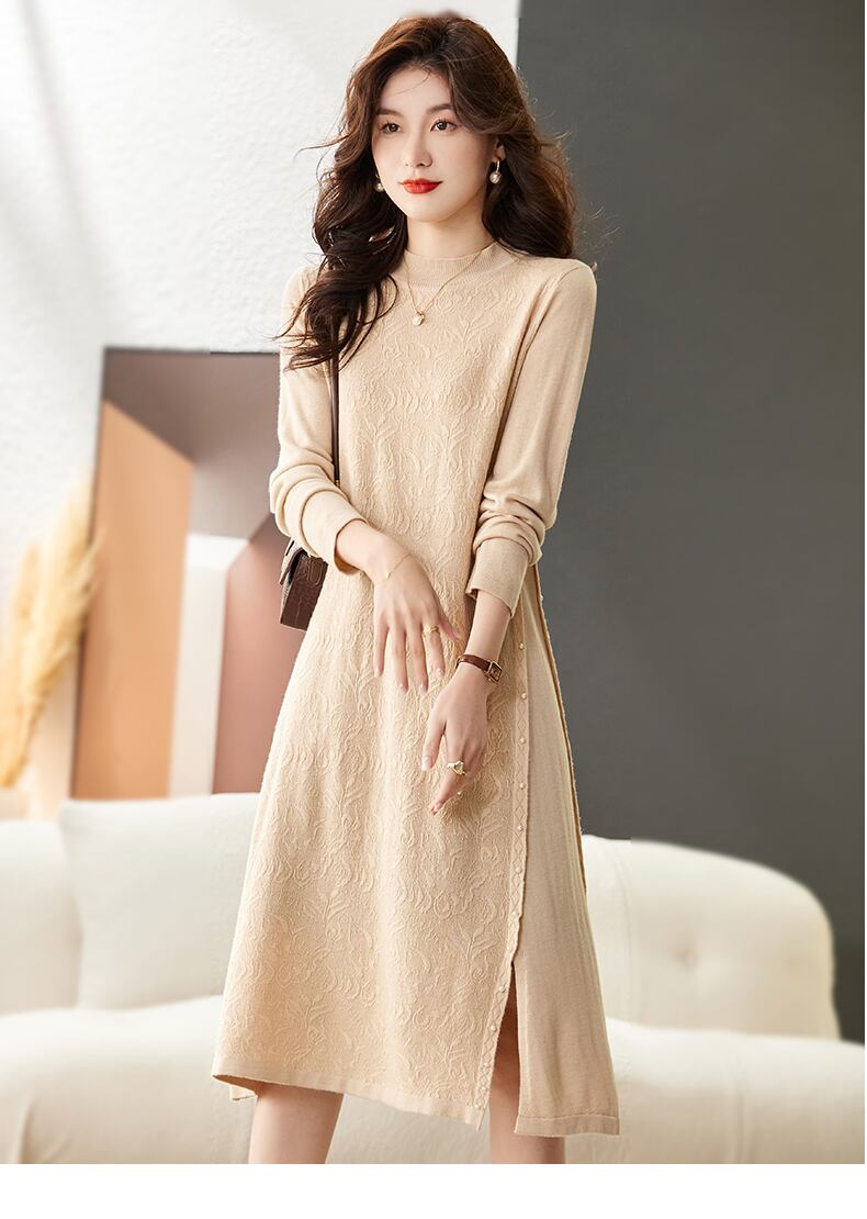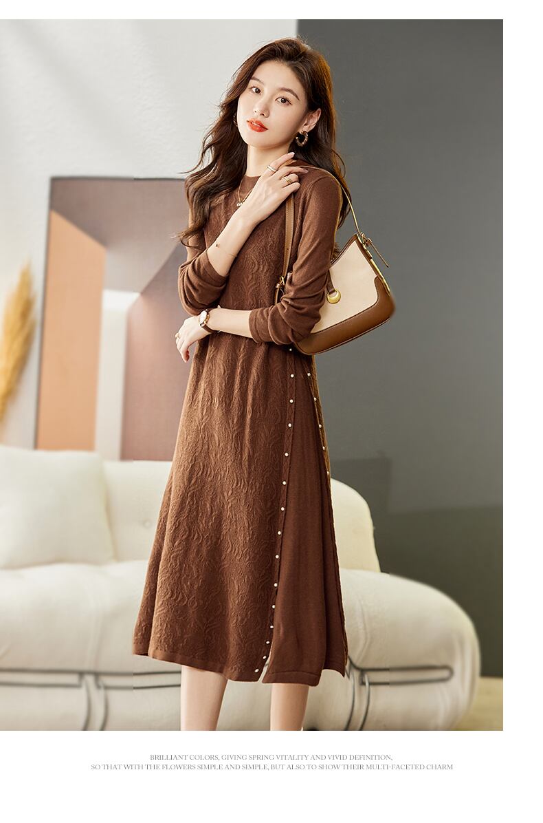 秋 冬 ファッション スタイル ニット ドレス ビーズ デザイン センス 女性 セータースカート アプリコット ブラウン ブラック M L XL XXL ワンピース 膝上 袖あり かわいい 大人可愛い きれいめ シンプル カジュアル 大人 上品 おしゃれ お洒落 大人可愛い 大人女子 キュート 存在感 春 秋 冬 10代 20代 30代 40代 レディース 女性用 女の子 オフィス 学生 通学 デート お出かけ 女子会 休日 普段使い ファッション コーデ スタイル モテ トレンド インスタ映え 色展開