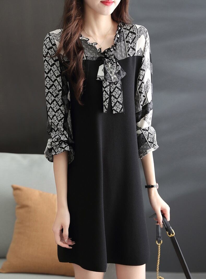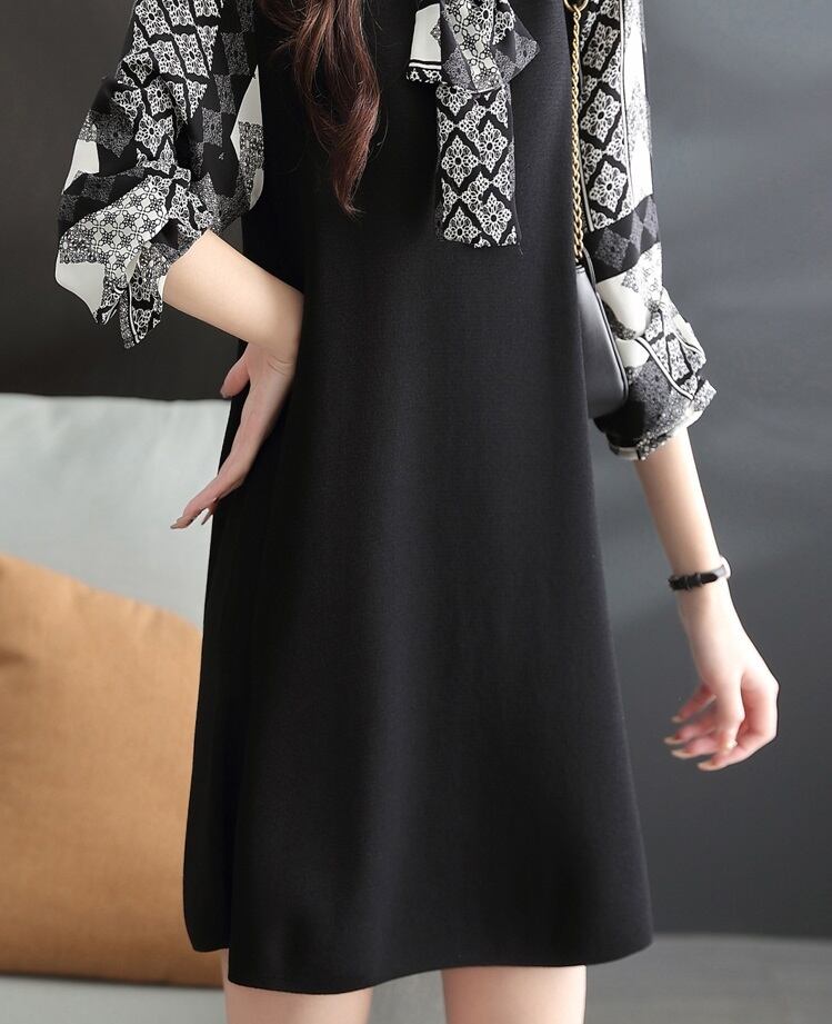 春 女性 長袖 ちょう結び ドレス ファッション プリント ボトムス スカート ブラック&ホワイト ブラック&ベージュ M L XL ワンピース 袖あり かわいい 大人可愛い きれいめ シンプル カジュアル 大人 上品 おしゃれ お洒落 大人可愛い 大人女子 キュート 存在感 春 秋 冬 10代 20代 30代 40代 レディース 女性用 女の子 オフィス 学生 通学 デート お出かけ 女子会 休日 パーティー イベント 普段使い ファッション コーデ スタイル モテ トレンド インスタ映え