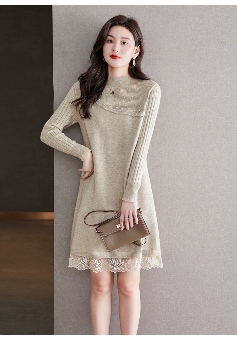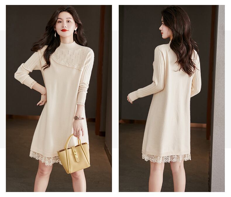 ファッション ビーズ デザイン センス セーター ドレス 女性 秋 レース スカート アプリコット クリーミーホワイト ブラック M L XL XXL ワンピース 袖あり かわいい 大人可愛い きれいめ シンプル カジュアル 大人 上品 おしゃれ お洒落 大人可愛い 大人女子 キュート 存在感 春 秋 冬 10代 20代 30代 40代 レディース 女性用 女の子 オフィス 学生 通学 デート お出かけ 女子会 休日 パーティ 普段使い ファッション コーデ スタイル モテ トレンド インスタ映え 色展開
