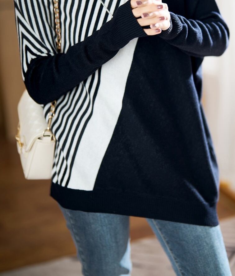 秋 冬 黒 トライ 配色 ルーズ ボトムス セーター プルオーバー 女性 セーター ブラック M L XL XXL トップス セーター 袖あり 長袖 かわいい 大人可愛い きれいめ シンプル カジュアル 大人 上品 おしゃれ お洒落 大人可愛い 大人女子 キュート 春 夏 秋 10代 20代 30代 レディース 女性用 女の子 通勤 学生 通学 デート お出かけ 女子会 お泊まり 休日 パーティー イベント 旅行 普段使い ファッション コーデ スタイル インスタ映え
