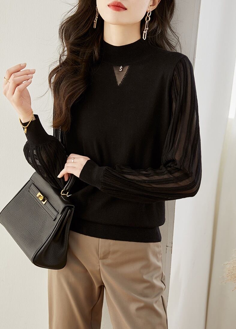 ショート メッシュ スリーブ ハーフ ハイ カラー ニット セーター 女性 冬 スタイル ゆったりとした 薄い インナー ボトムス トップ ベージュ ブラック M L XL XXL トップス セーター 袖あり かわいい 大人可愛い きれいめ シンプル カジュアル 大人 上品 おしゃれ お洒落 大人可愛い 大人女子 キュート 春 夏 秋 10代 20代 30代 レディース 女性用 女の子 通勤 学生 通学 デート お出かけ 女子会 お泊まり 休日 パーティー イベント 旅行 普段使い ファッション コーデ