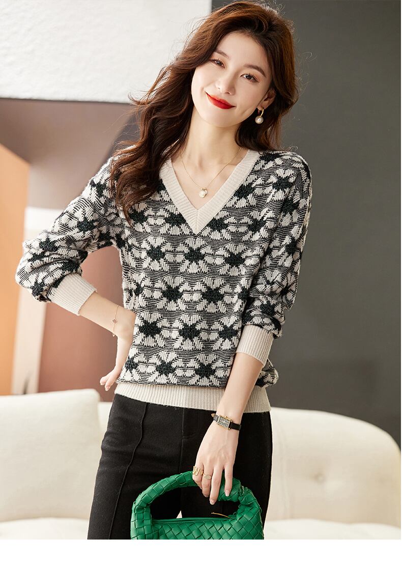 秋 冬 女性 V ネック ショート ピュア ウール 緩い カバー レトロ ジャカード 長袖 セーター ブラック キャメル M L XL XXL トップス ニットソー 袖あり かわいい 大人可愛い きれいめ シンプル カジュアル 大人 上品 おしゃれ お洒落 大人可愛い 大人女子 キュート 春 夏 秋 10代 20代 30代 レディース 女性用 女の子 通勤 学生 通学 デート お出かけ 女子会 お泊まり 休日 パーティー イベント 旅行 普段使い ファッション コーデ スタイル インスタ映え 色展開