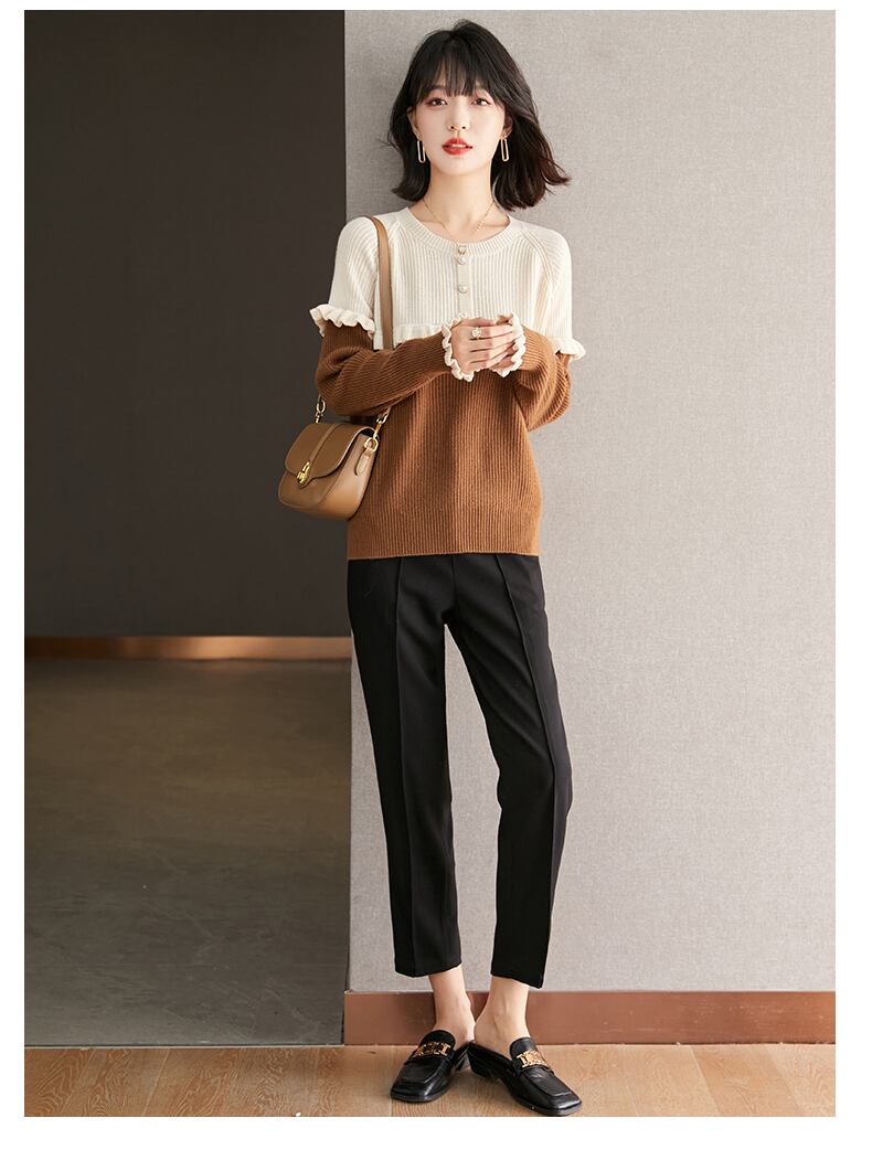 秋 冬 緩い デザイン センス ニッチ セーター ショート ピュア ウール ピットストリップ ニット セーター 女性 ブラウン ブラック M L XL XXL トップス ニットソー 袖あり かわいい 大人可愛い きれいめ シンプル カジュアル 大人 上品 おしゃれ お洒落 大人可愛い 大人女子 キュート 春 夏 秋 10代 20代 30代 レディース 女性用 女の子 通勤 学生 通学 デート お出かけ 女子会 お泊まり 休日 普段使い ファッション コーデ スタイル インスタ映え 色展開