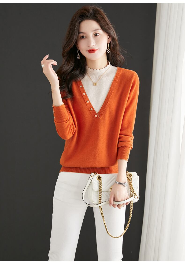 ご覧いただきありがとうございます。秋と冬にぴったりな、シックでエレガントなエッジの効いたミドルカラーのショートニットセーターが入荷いたしました。ネイビー、オレンジ、ブラックの3色とM、L、XL、XXLのサイズ展開で、お好きなコーディネートに合わせてお選びいただけます。
