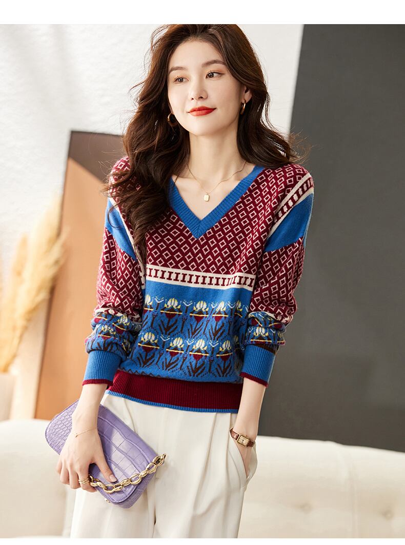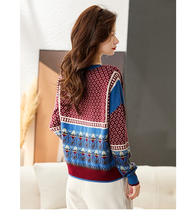 秋 冬 レトロなジャカード V ネック ウール ニット ウェア ショート 女性 セーター オレンジ レッド M L XL XXL トップス 袖あり かわいい 大人可愛い きれいめ シンプル カジュアル 大人 上品 おしゃれ お洒落 大人可愛い 大人女子 キュート 春 夏 秋 10代 20代 30代 レディース 女性用 女の子 通勤 学生 通学 デート お出かけ 女子会 お泊まり 休日 パーティー イベント 旅行 普段使い ファッション コーデ スタイル インスタ映え 色展開
