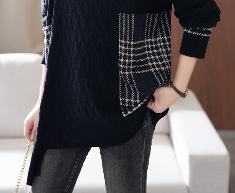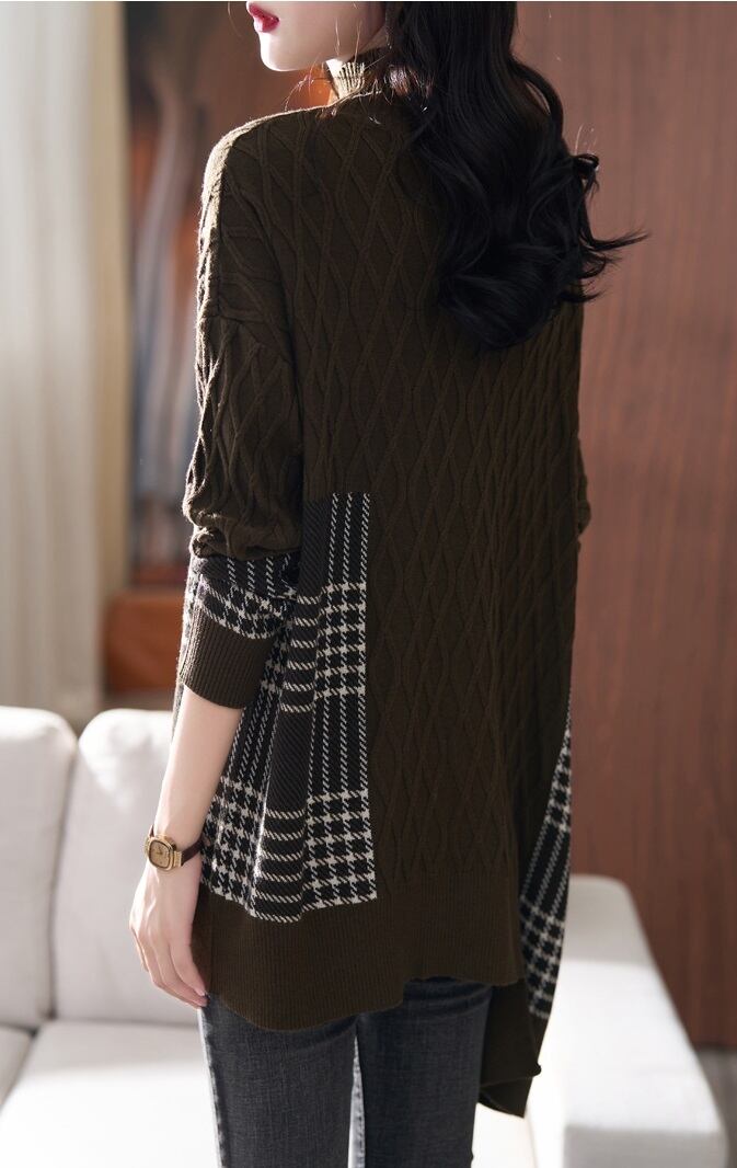 綿素材でできたミドル丈のセーター。オシャレなデザインが特徴。