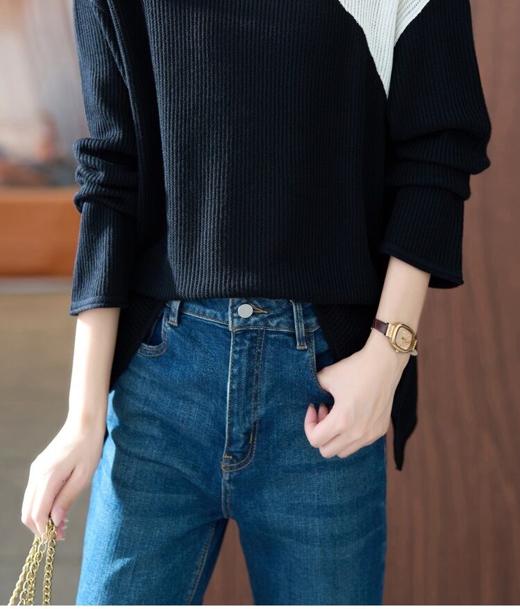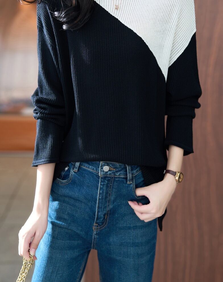 スタイル オールマッチ シンプル セーター 秋 黒と白 コントラストカラー スタイル ボトムス シャツ 女性 ブラック M L XL XXL トップス 袖あり かわいい 大人可愛い きれいめ シンプル カジュアル 大人 上品 おしゃれ お洒落 大人可愛い 大人女子 キュート 春 夏 秋 10代 20代 30代 レディース 女性用 女の子 通勤 学生 通学 デート お出かけ 女子会 お泊まり 休日 パーティー イベント 旅行 普段使い ファッション コーデ スタイル インスタ映え