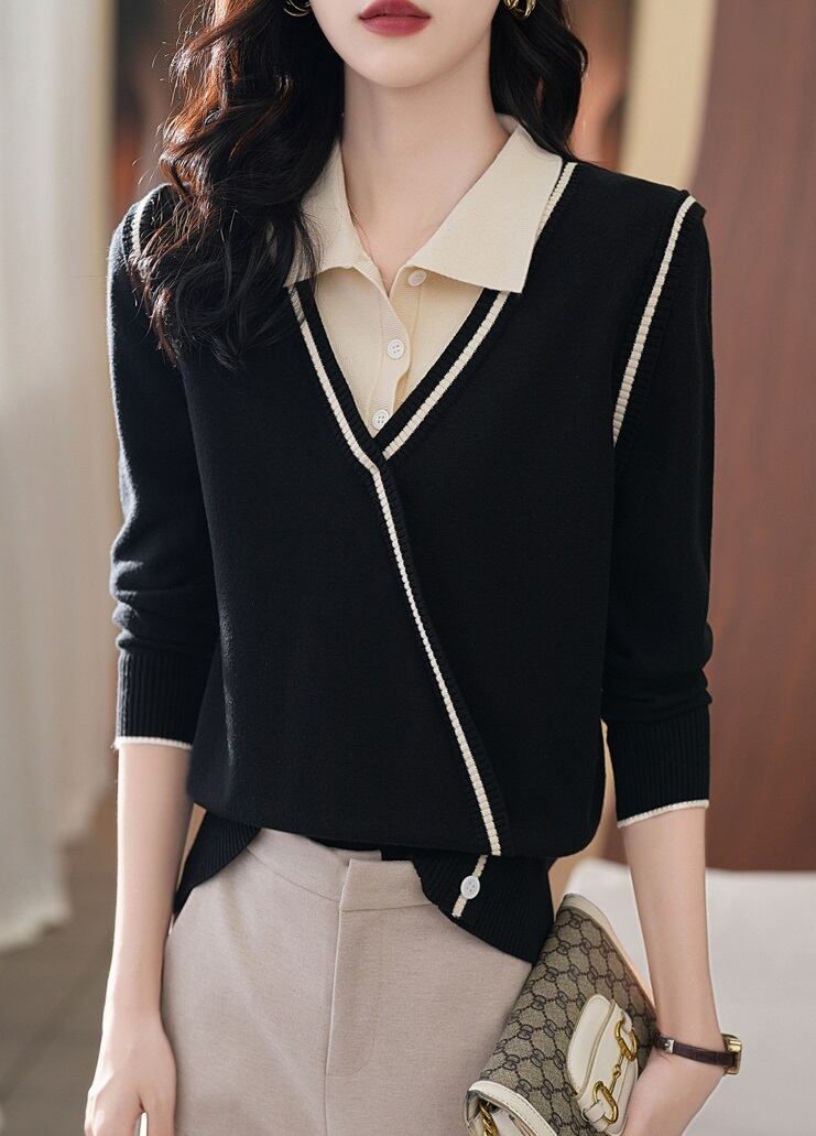 秋 スタイル ルーズ 薄いトップ ファッショナブル 外国 スタイル ニット セーター 女性 ブラック M L XL XXL トップス 袖あり かわいい 大人可愛い きれいめ シンプル カジュアル 大人 上品 おしゃれ お洒落 大人可愛い 大人女子 キュート 春 夏 秋 10代 20代 30代 レディース 女性用 女の子 通勤 学生 通学 デート お出かけ 女子会 お泊まり 休日 パーティー イベント 旅行 普段使い ファッション コーデ スタイル インスタ映え