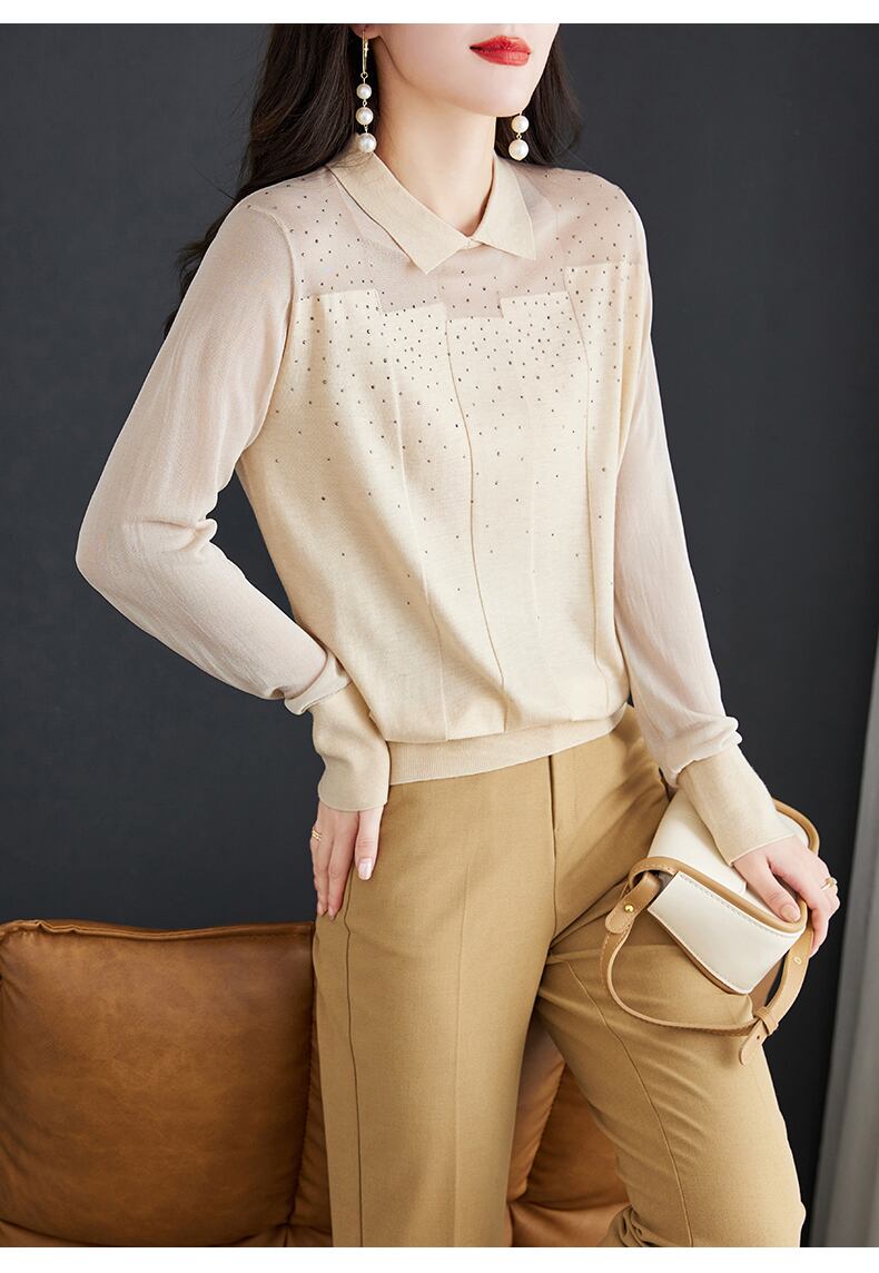セクシー メッシュ 薄い トップ 女性 ニット ルーズ ウエスタン スタイル ラペル グレード テクスチャ シャツ ブラウン ブラック ベージュ M L XL XXL トップス 袖あり かわいい 大人可愛い きれいめ シンプル カジュアル 大人 上品 おしゃれ お洒落 大人可愛い 大人女子 キュート 春 夏 秋 10代 20代 30代 レディース 女性用 女の子 通勤 学生 通学 デート お出かけ 女子会 お泊まり 休日 パーティー イベント 旅行 普段使い ファッション コーデ スタイル インスタ映え | ameiro18