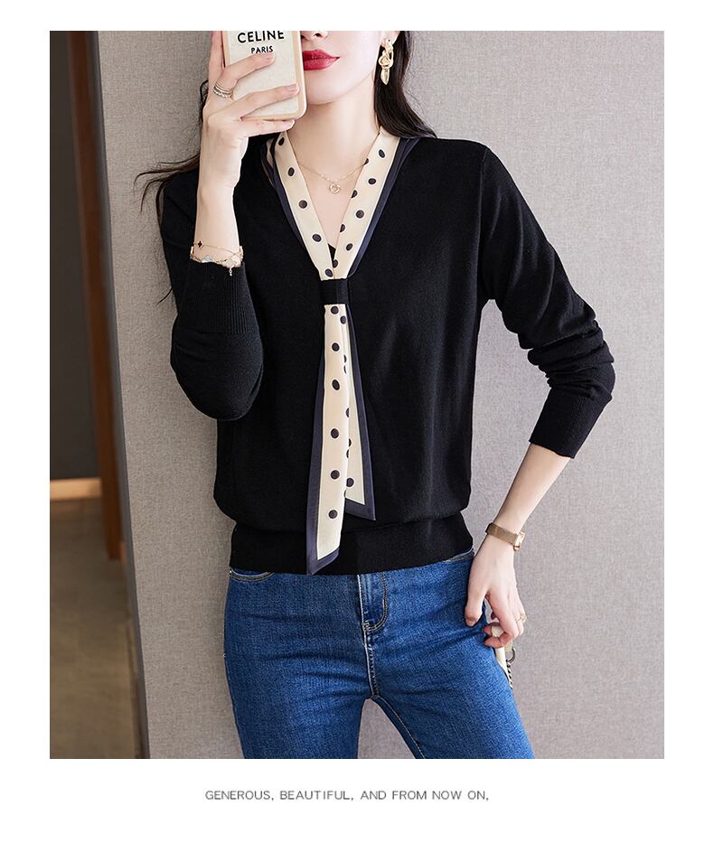 春 ライト スタイル Vネック 水玉リボン ショート ゆったり ボトムス セーター 長袖 レディース トップス ブラウン ベージュ ブラック M L XL XXL トップス 袖あり かわいい 大人可愛い きれいめ シンプル カジュアル 大人 上品 おしゃれ お洒落 大人可愛い 大人女子 キュート 春 夏 秋 10代 20代 30代 レディース 女性用 女の子 通勤 学生 通学 デート お出かけ 女子会 お泊まり 休日 パーティー イベント 旅行 普段使い ファッション スタイル インスタ映え 色展開 | ameiro18