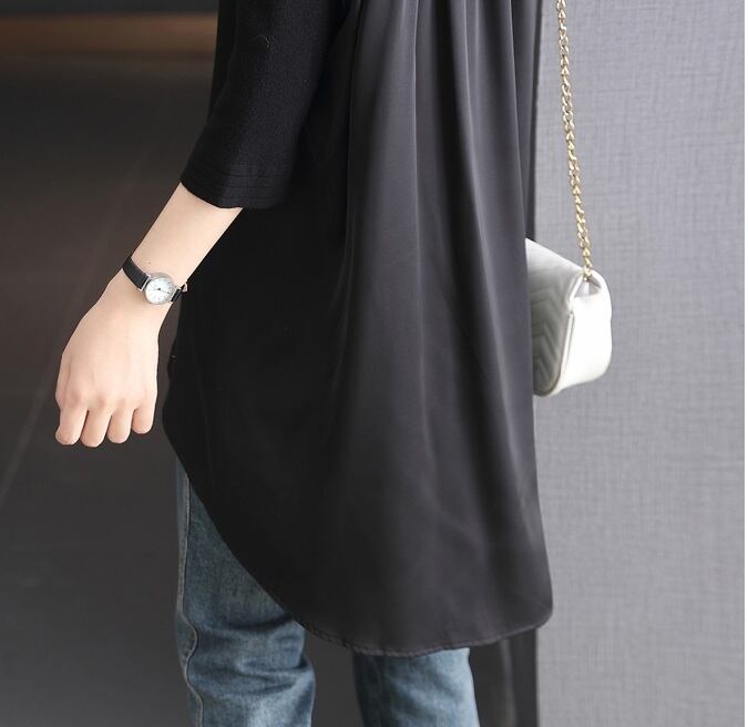 商品の背景ストーリー:夏は、色を取り入れた鮮やかなファッションが人気ですが、黒も欠かせません。でも、スタイリッシュでエレガントな黒のセーターはなかなか見つからないもの。そこで、エレガントでかわいらしい丈感や、個性的なディテールを施したアイテムをお探しの方々のために、このニットセーターを作りました。