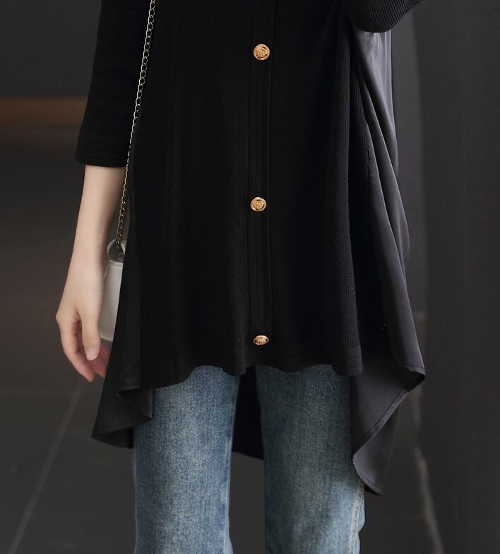 夏 エレガント 個性的なデザイン カジュアル ボタン 黒 ニット セーター 薄手 フロント ショート ロング トップ 女性 ブラック M L XL XXL トップス 袖あり かわいい 大人可愛い きれいめ シンプル カジュアル 大人 上品 おしゃれ お洒落 大人可愛い 大人女子 キュート 春 夏 秋 10代 20代 30代 レディース 女性用 女の子 通勤 学生 通学 デート お出かけ 女子会 お泊まり 休日 パーティー イベント 旅行 普段使い ファッション コーデ スタイル インスタ映え | ameiro18