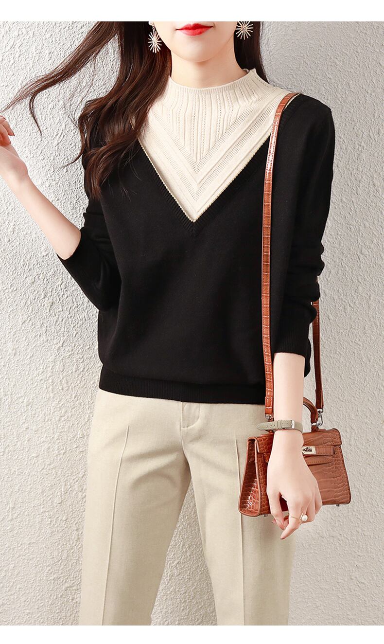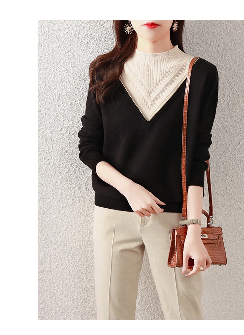 エレガント 外国風 ショート トップス ニット ウェア 秋 冬 ニッチ ハーフハイカラー セーター 女性 ブラック M L XL XXL トップス 袖あり かわいい 大人可愛い きれいめ シンプル カジュアル 大人 上品 おしゃれ お洒落 大人可愛い 大人女子 キュート 春 夏 秋 10代 20代 30代 レディース 女性用 女の子 通勤 学生 通学 デート お出かけ 女子会 お泊まり 休日 パーティー イベント 旅行 普段使い ファッション コーデ スタイル インスタ映え | ameiro18