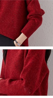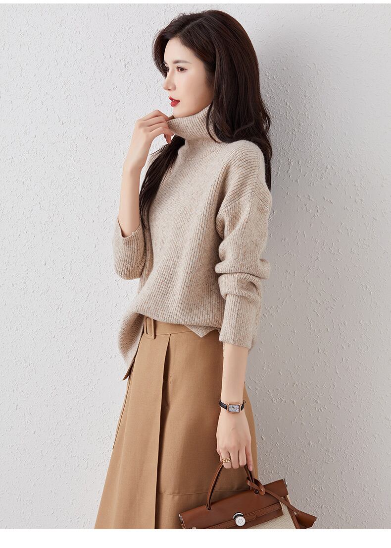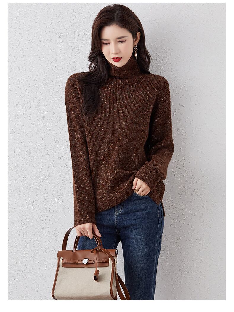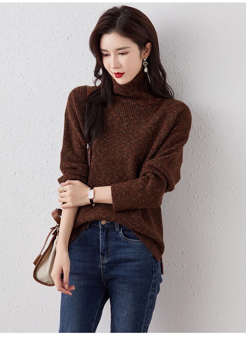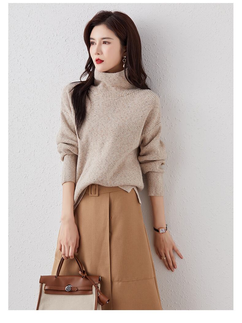 ビッグサイズのルーズなシルエットが女性らしいセーター。ハイネックデザインと長袖で、寒い季節でも暖かく過ごせます。ブルー、ブラウン、レッド、アプリコットの4色展開で、あなたの個性に合ったカラーを選べます。