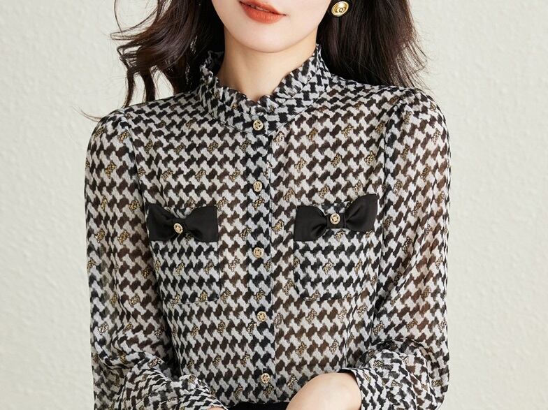 秋 エレガント 上品 オールマッチ トップ女性 千鳥格子 ちょう結び デザイン スカート シフォン シャツ ブラック M L XL XXL トップス 袖あり かわいい 大人可愛い きれいめ シンプル カジュアル 大人 上品 おしゃれ お洒落 大人可愛い 大人女子 キュート 春 夏 秋 10代 20代 30代 レディース 女性用 女の子 通勤 学生 通学 デート お出かけ 女子会 お泊まり 休日 パーティー イベント 旅行 普段使い ファッション コーデ スタイル インスタ映え
