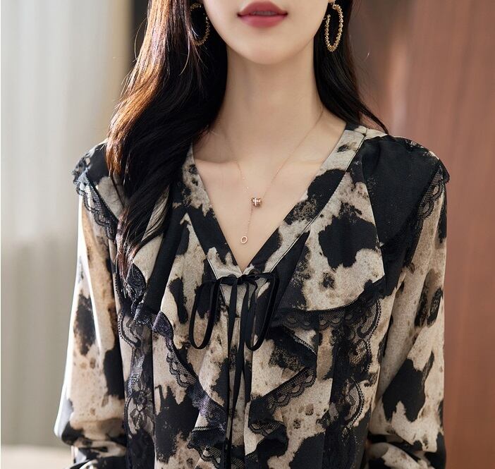 秋 エレガント カジュアル 個性的なデザイン Vネック シフォンシャツ ゆったりプリント スリム 長袖 トップス レディース 薄手 ブラック M L XL XXL トップス 袖あり かわいい 大人可愛い きれいめ シンプル カジュアル 大人 上品 おしゃれ お洒落 大人可愛い 大人女子 キュート 春 夏 秋 10代 20代 30代 レディース 女性用 女の子 通勤 学生 通学 デート お出かけ 女子会 お泊まり 休日 パーティー イベント 旅行 普段使い ファッション コーデ スタイル インスタ映え | ameiro18