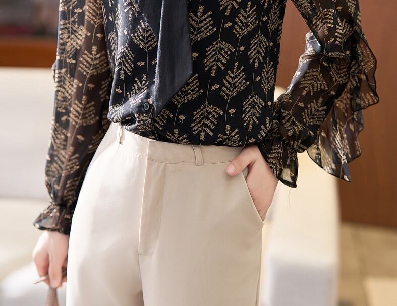 レディース カジュアル エレガント 個性的なデザイン 黒 洋風 秋 フリル スリーブ シフォンシャツ トップ 女性 ブラック M L XL XXL トップス 袖あり かわいい 大人可愛い きれいめ シンプル カジュアル 大人 上品 おしゃれ お洒落 大人可愛い 大人女子 キュート 春 夏 秋 10代 20代 30代 レディース 女性用 女の子 通勤 学生 通学 デート お出かけ 女子会 お泊まり 休日 パーティー イベント 旅行 普段使い ファッション コーデ スタイル インスタ映え | ameiro18
