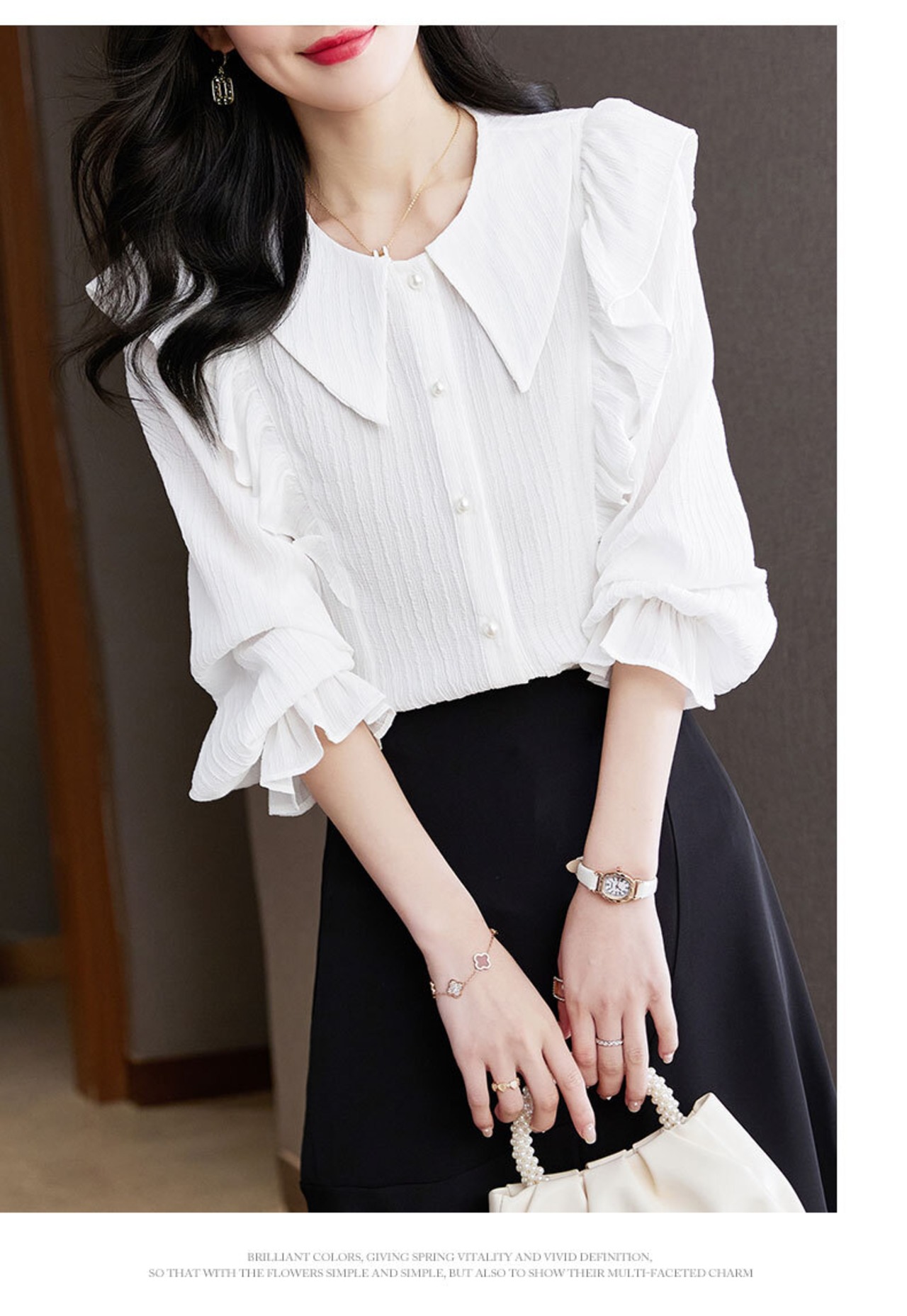 春 エレガント 無地 薄い ボタン シャツ プリーツ シャツ 韓国風 シックトップ女性 ホワイト M L XL XXL トップス 袖あり かわいい 大人可愛い きれいめ シンプル カジュアル 大人 上品 おしゃれ お洒落 大人可愛い 大人女子 キュート 春 夏 秋 10代 20代 30代 レディース 女性用 女の子 通勤 学生 通学 デート お出かけ 女子会 お泊まり 休日 パーティー イベント 旅行 普段使い ファッション コーデ スタイル インスタ映え