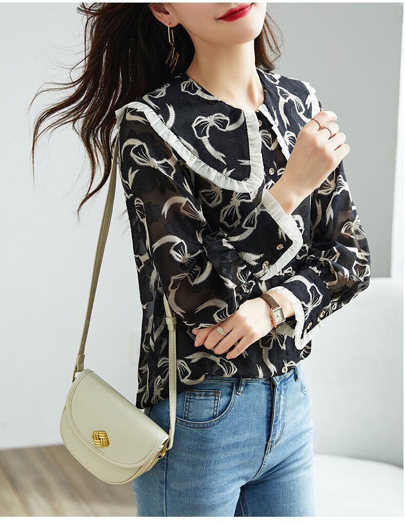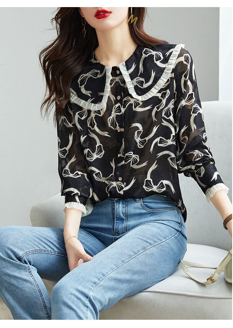 春 エレガント 薄い シャツ シフォン 黒 シャツ 緩い ファッション プリント トップ 女性 ブラック M L XL XXL トップス 袖あり かわいい 大人可愛い きれいめ シンプル カジュアル 大人 上品 おしゃれ お洒落 大人可愛い 大人女子 キュート 春 夏 秋 10代 20代 30代 レディース 女性用 女の子 通勤 学生 通学 デート お出かけ 女子会 お泊まり 休日 パーティー イベント 旅行 普段使い ファッション コーデ スタイル インスタ映え | ameiro18