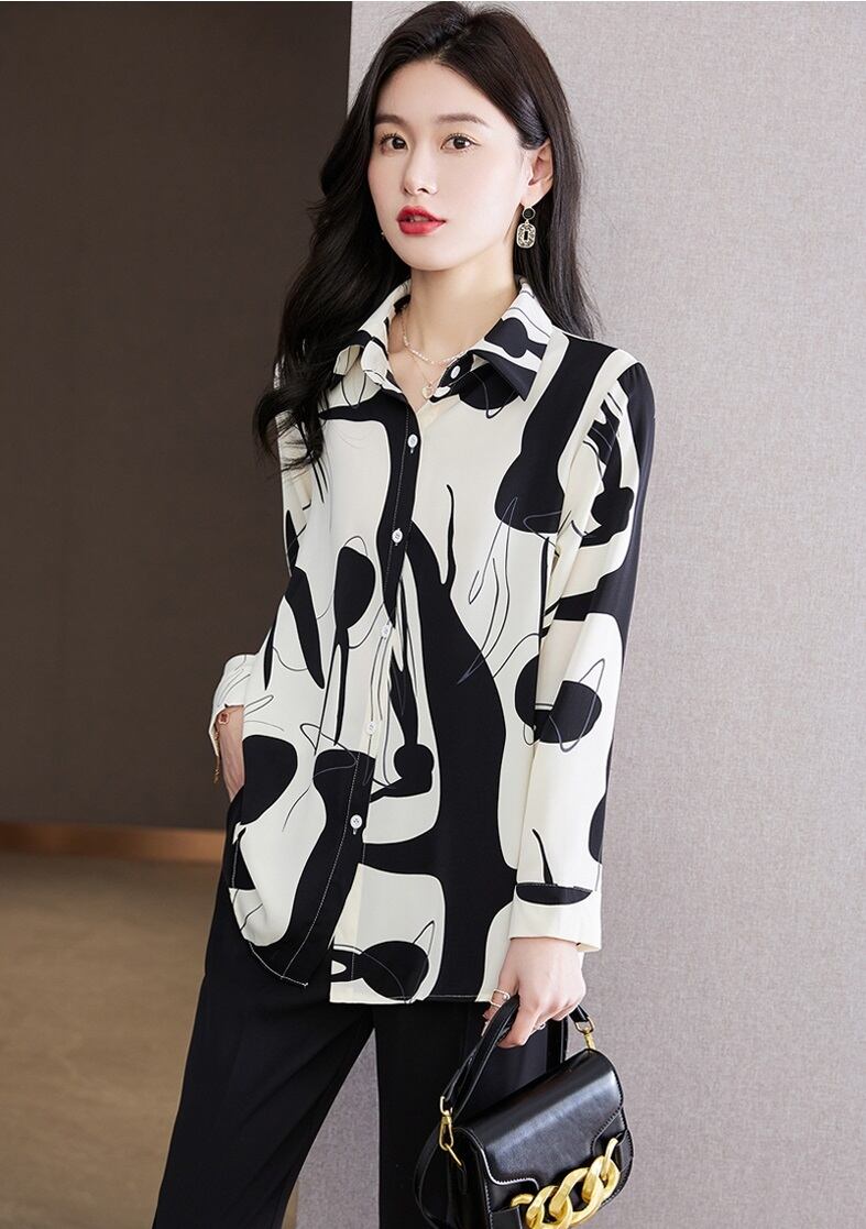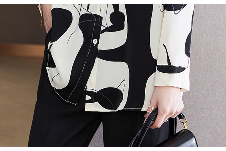 春 エレガント 個性的なデザイン プリント デザイン シャツ 長袖 ルーズ ラペル シフォンシャツ カジュアル トップ 女性 M L XL XXL トップス 袖あり かわいい 大人可愛い きれいめ シンプル カジュアル 大人 上品 おしゃれ お洒落 大人可愛い 大人女子 キュート 春 夏 秋 10代 20代 30代 レディース 女性用 女の子 通勤 学生 通学 デート お出かけ 女子会 お泊まり 休日 パーティー イベント 旅行 普段使い ファッション コーデ スタイル インスタ映え | ameiro18