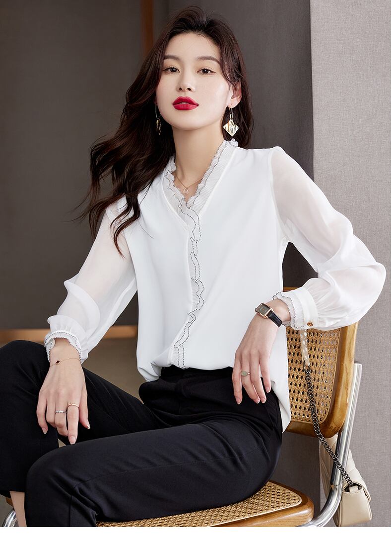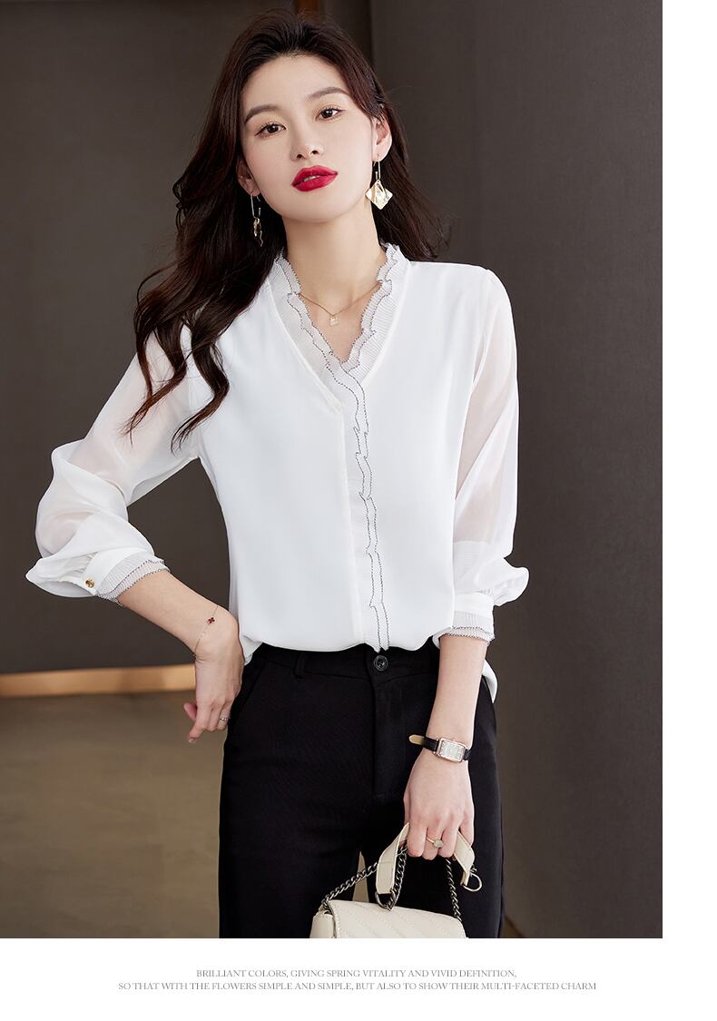 春 エレガント V ネック シフォンシャツ 白 美しい シャツ 薄手 女性 トップ アプリコット ブラック ホワイト M L XL XXL トップス 袖あり かわいい 大人可愛い きれいめ シンプル カジュアル 大人 上品 おしゃれ お洒落 大人可愛い 大人女子 キュート 春 夏 秋 10代 20代 30代 レディース 女性用 女の子 通勤 学生 通学 デート お出かけ 女子会 お泊まり 休日 パーティー イベント 旅行 普段使い ファッション コーデ スタイル インスタ映え 色展開 | ameiro18