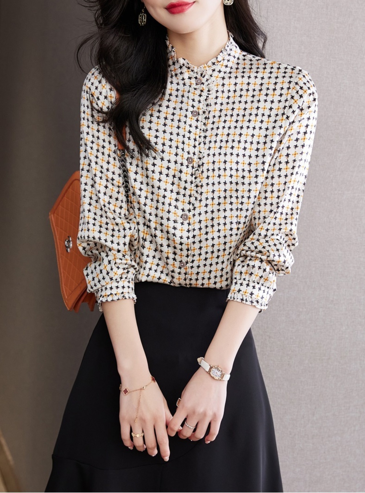 秋 エレガント 個性的なデザイン 花 フレンチ トップ シルクシャツ 女性 シルク サテン レイヤード シャツ M L XL XXL トップス 袖あり かわいい 大人可愛い きれいめ シンプル カジュアル 大人 上品 おしゃれ お洒落 大人可愛い 大人女子 キュート 春 夏 秋 10代 20代 30代 レディース 女性用 女の子 通勤 学生 通学 デート お出かけ 女子会 お泊まり 休日 パーティー イベント 旅行 普段使い ファッション コーデ スタイル インスタ映え | ameiro18