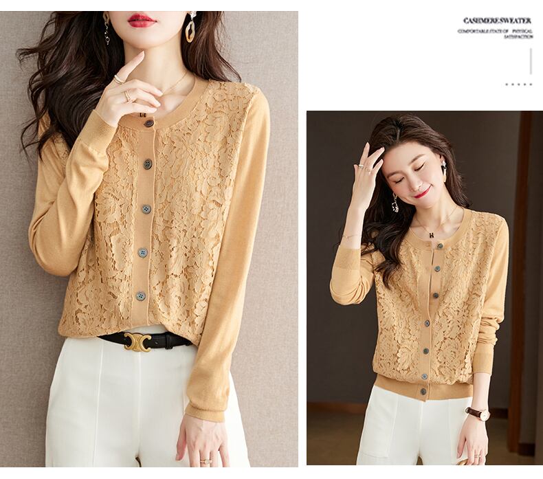 エレガント 薄い トップス 女性 秋 ファッション レース レース デザイン ニッチ ニット カーディガン キャメル ブラック M L XL XXL トップス 袖あり かわいい 大人可愛い きれいめ シンプル カジュアル 大人 上品 おしゃれ お洒落 大人可愛い 大人女子 キュート 春 夏 秋 10代 20代 30代 レディース 女性用 女の子 通勤 学生 通学 デート お出かけ 女子会 お泊まり 休日 パーティー イベント 旅行 普段使い ファッション コーデ スタイル インスタ映え 色展開 | ameiro18