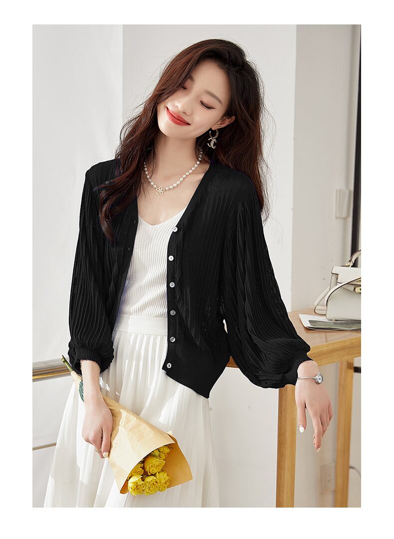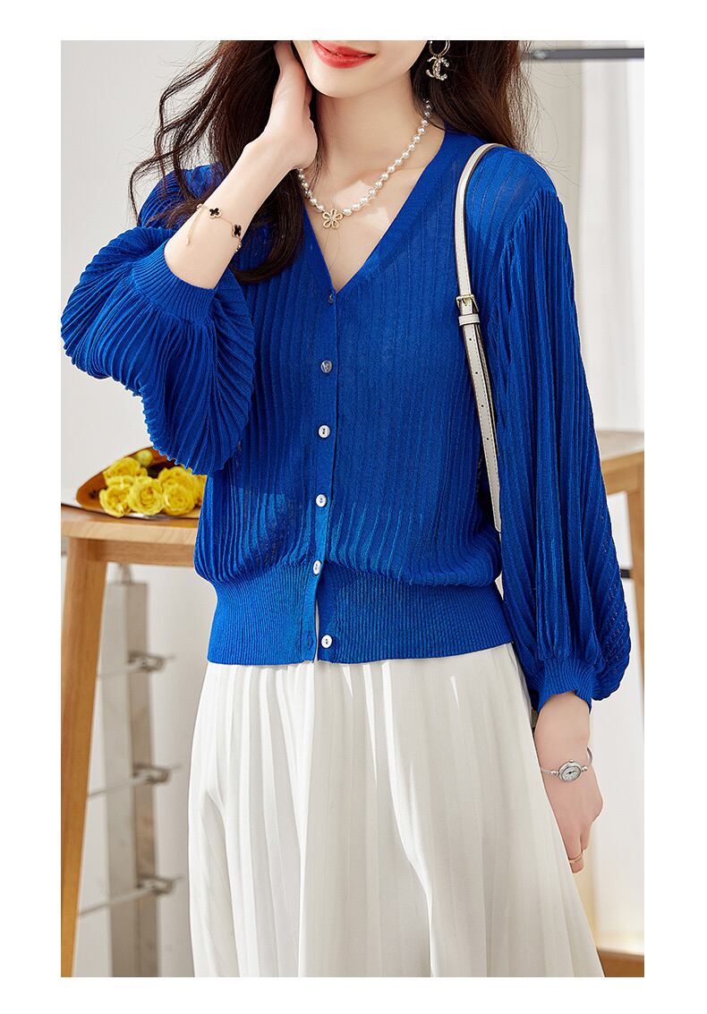エレガント スタイリッシュ セクション シック プリーツ ランタンスリーブ ニット カーディガン V ネック ルーズ トップ 女性 夏 ブラック ブルー ホワイト M L XL トップス 袖あり かわいい 大人可愛い きれいめ シンプル カジュアル 大人 上品 おしゃれ お洒落 大人可愛い 大人女子 キュート 春 夏 秋 10代 20代 30代 レディース 女性用 女の子 通勤 学生 通学 デート お出かけ 女子会 お泊まり 休日 旅行 普段使い ファッション コーデ スタイル インスタ映え 色展開 | ameiro18