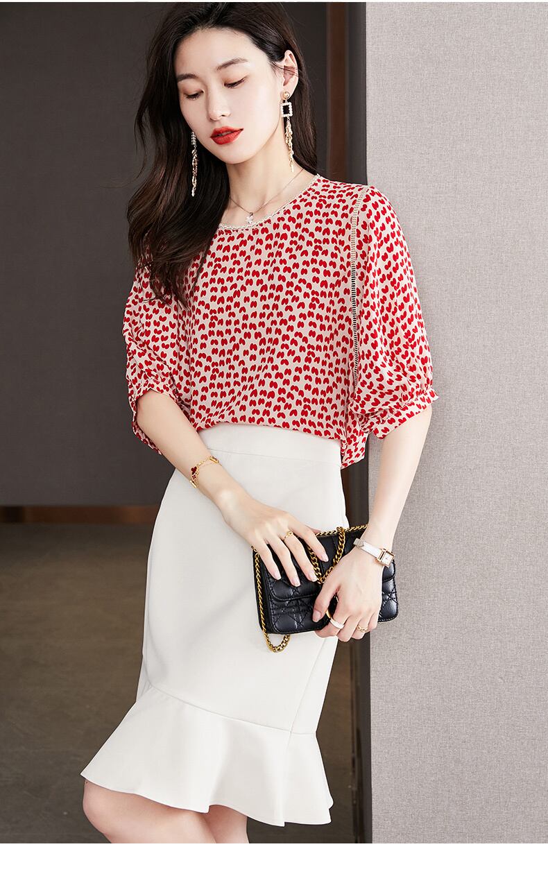 ご注文いただきありがとうございます!夏の爽やかな風を感じさせる、バットスリーブのシフォンシャツの登場です!水玉柄が女性らしさを際立たせ、ショート丈が軽やかな印象を与えます。グリーンとレッドの2色展開で、MからXXLのサイズ展開もご用意しています。