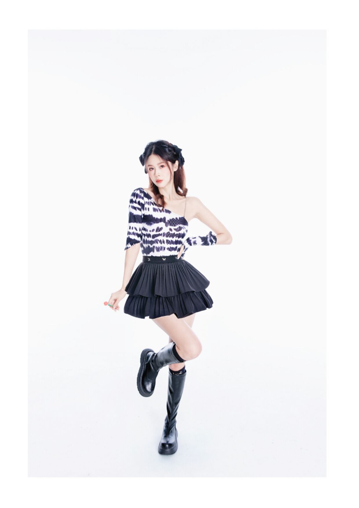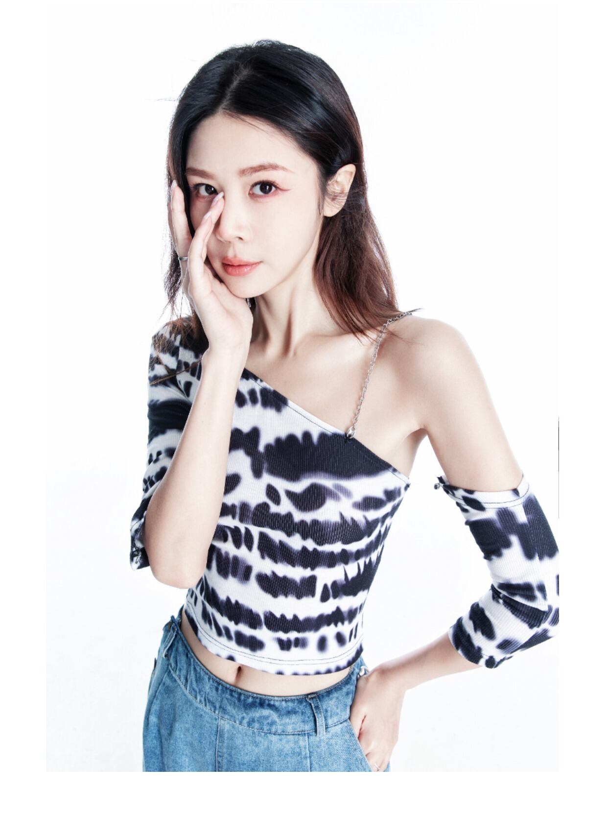 アイコンのようにもキュートにもなれる、白黒イレギュラーオフショルダートップス。シンプルなデザインながら、袖の切り替えや裾のアシンメトリーなカットが、オシャレなアクセントに。カジュアルからきれいめまで幅広いスタイルに合わせられる一枚です。