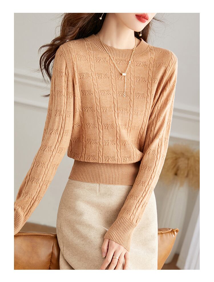このハイウエストウールセーターは、女性の秋冬ファッションにぴったりの一枚です。ベージュやキャメルといったシンプルなカラー展開で、上品かつ可愛らしいスタイルを演出します。大人可愛いデザインでありながら、カジュアルからきれいめまで幅広いコーディネートにも対応しています。