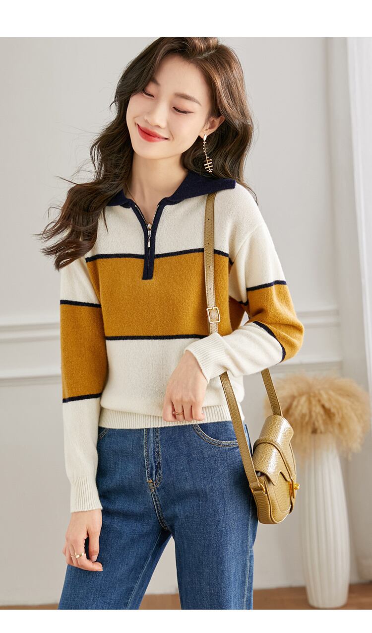 コントラストカラー ストライプ ウール セーター 女性 秋 冬 ジッパー ニット トップ 美しい 外国風 セーター イエロー M L XL トップス 袖あり かわいい 大人可愛い きれいめ シンプル カジュアル 大人 上品 おしゃれ お洒落 大人可愛い 大人女子 キュート 春 夏 秋 10代 20代 30代 レディース 女性用 女の子 通勤 学生 通学 デート お出かけ 女子会 お泊まり 休日 パーティー イベント 旅行 普段使い ファッション コーデ スタイル インスタ映え