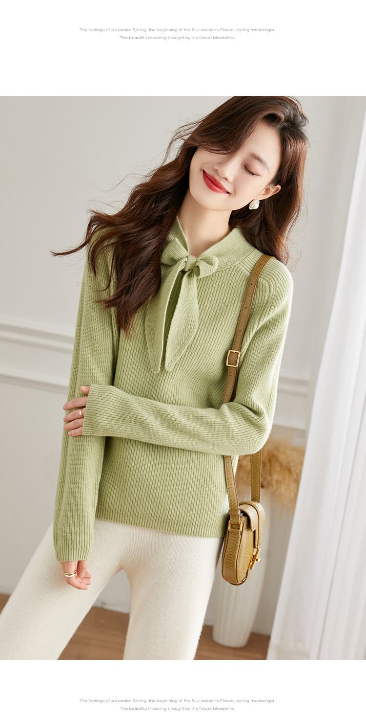華やかさと上品さを兼ね備えたちょう結びウールセーター。あなたのファッションスタイルを更に引き立て、周囲の人々を魅了することでしょう。
