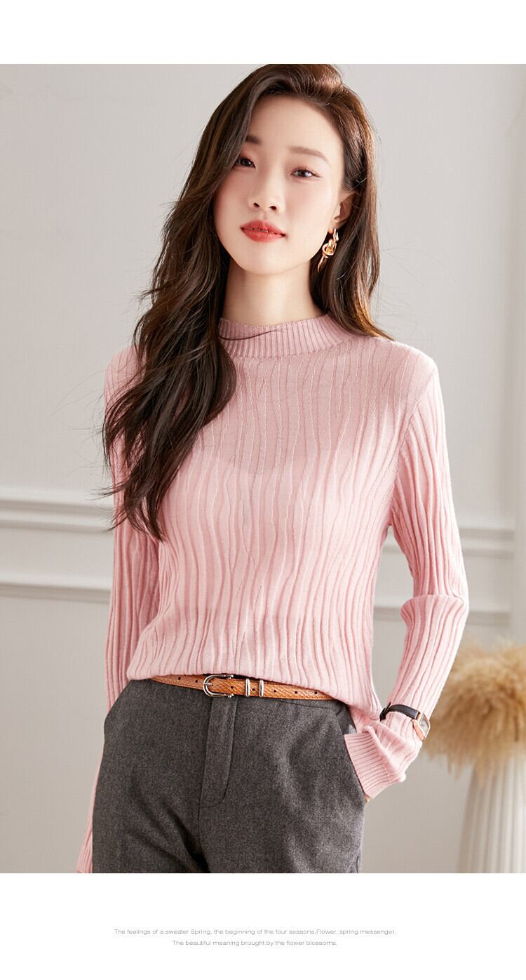 このハーフハイカラーカーディガンは、秋冬から春まで活躍するスリムフィットのセーターです。ショート丈のデザインで、大人可愛いスタイルにぴったり。キャメルやグリーン、アプリコット、ピンクなど、豊富なカラーバリエーションも魅力です。