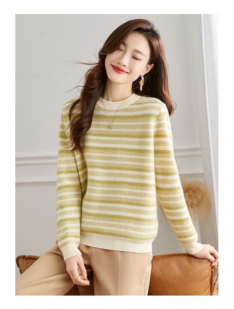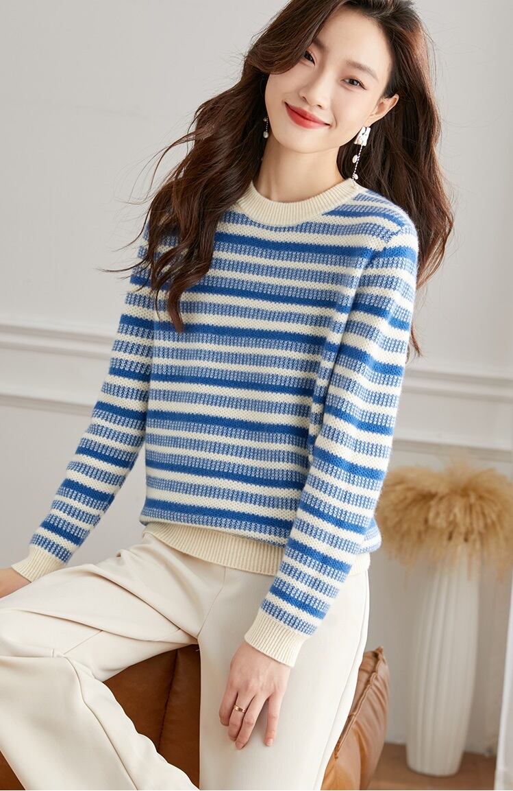 ストライプ ウール セーター ラウンド ネック セーター 女性 秋 冬 ショート ルース ファッション ウエスタン スタイル インナー ボトムス トップ ブルー グリーン M L トップス 袖あり かわいい 大人可愛い きれいめ シンプル カジュアル 大人 上品 おしゃれ お洒落 大人可愛い 大人女子 キュート 春 夏 秋 10代 20代 30代 レディース 女性用 女の子 通勤 学生 通学 デート お出かけ 女子会 お泊まり 休日 パーティー イベント 旅行 普段使い ファッション コーデ 色展開