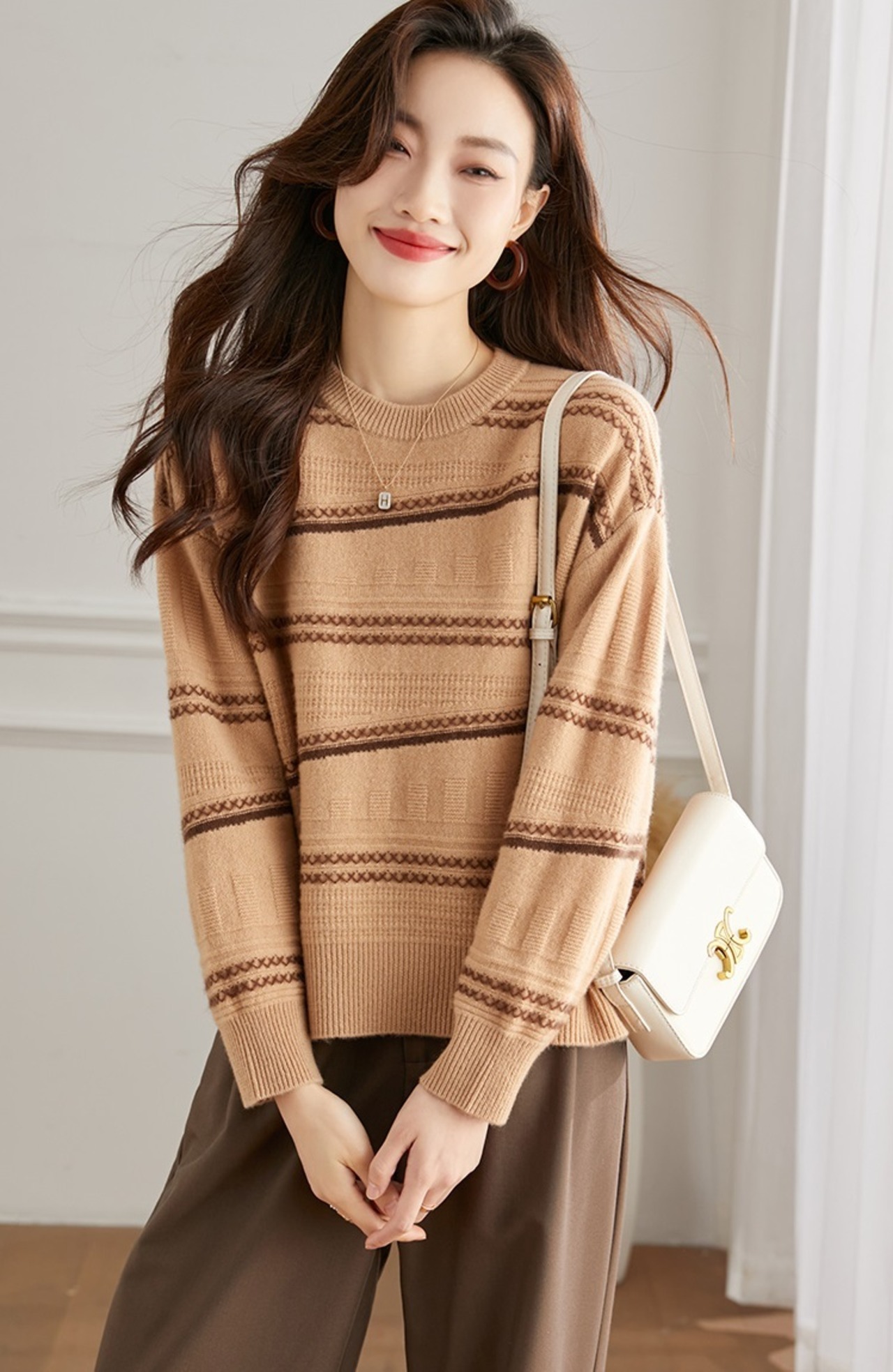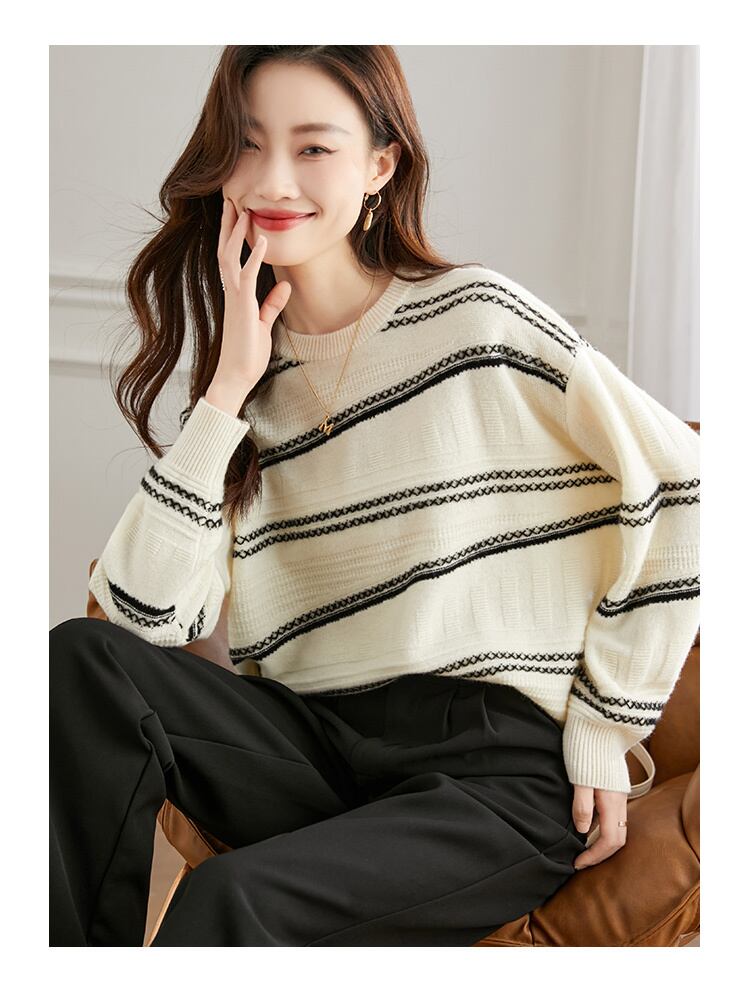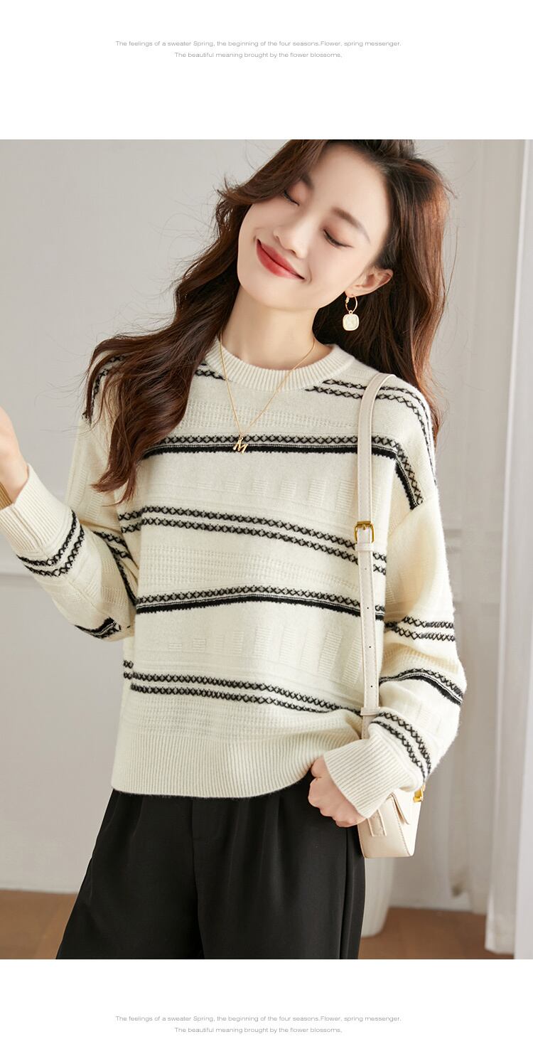 ストライプ ウール セーター レイジー ウィンド セーター レディース 秋 冬 アウター ルーズ ショート セクション インナー ボトム ニット キャメル ホワイト M L トップス 袖あり かわいい 大人可愛い きれいめ シンプル カジュアル 大人 上品 おしゃれ お洒落 大人可愛い 大人女子 キュート 春 夏 秋 10代 20代 30代 レディース 女性用 女の子 通勤 学生 通学 デート お出かけ 女子会 お泊まり 休日 パーティー イベント 旅行 普段使い ファッション コーデ スタイル 色展開 | ameiro18