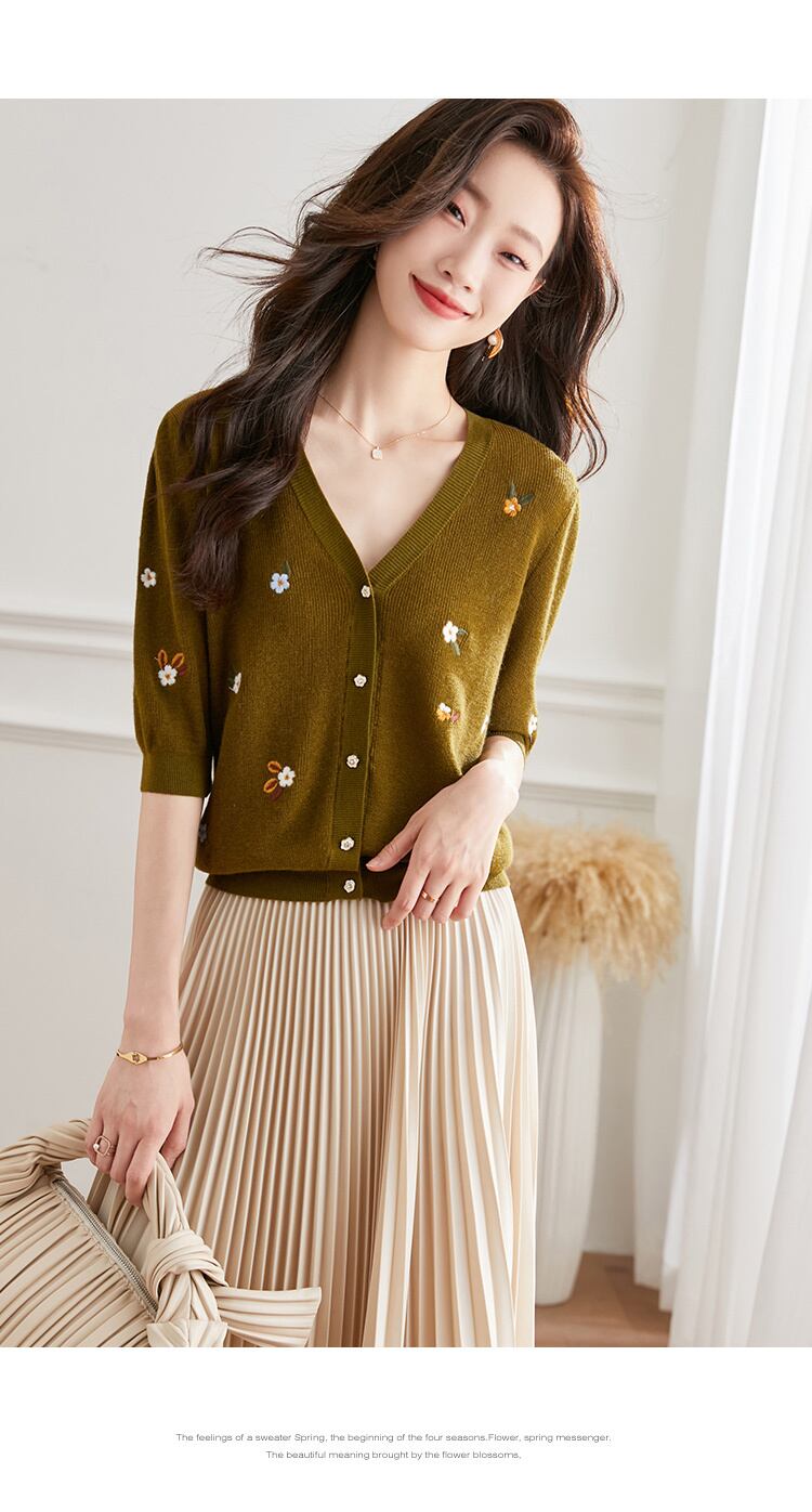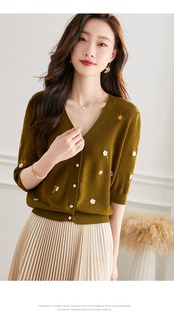 秋 七分袖 刺繍 ウール ニット カーディガン 女性 春 秋 アウター ウェア 薄い セーター ジャケット ホワイト グリーン ブラック M L トップス 袖あり かわいい 大人可愛い きれいめ シンプル カジュアル 大人 上品 おしゃれ お洒落 大人可愛い 大人女子 キュート 春 夏 秋 10代 20代 30代 レディース 女性用 女の子 通勤 学生 通学 デート お出かけ 女子会 お泊まり 休日 パーティー イベント 旅行 普段使い ファッション コーデ スタイル インスタ映え 色展開 | ameiro18