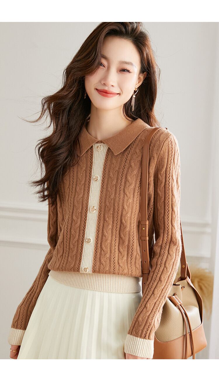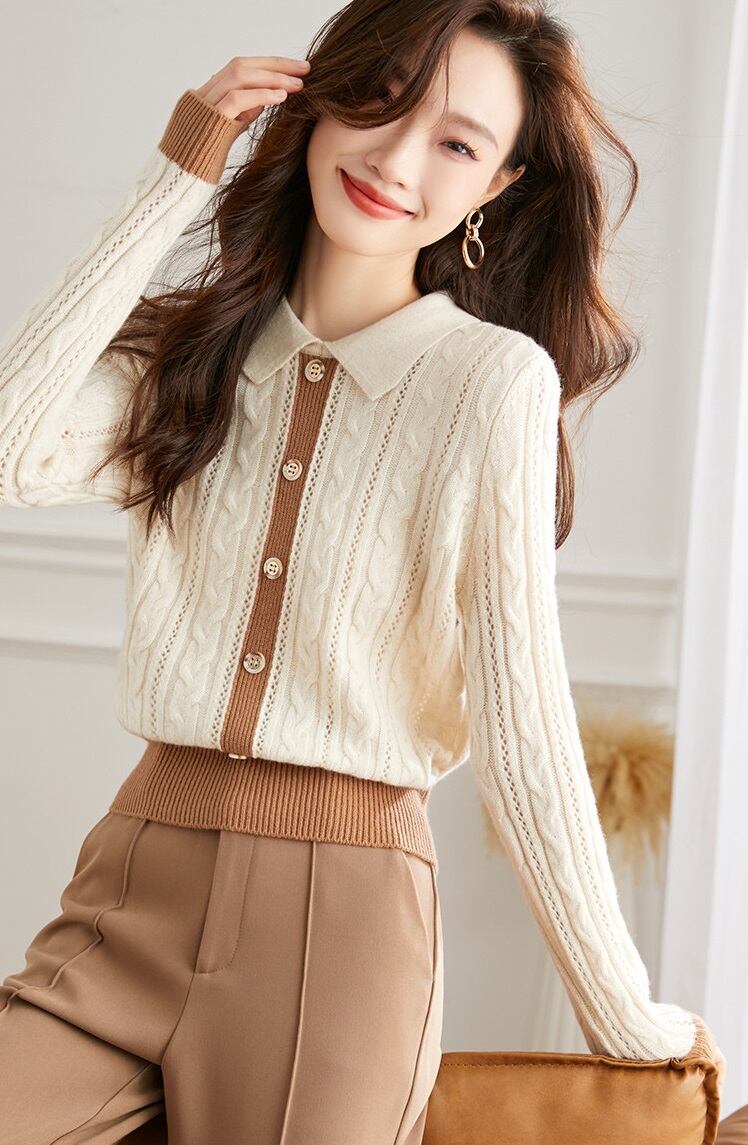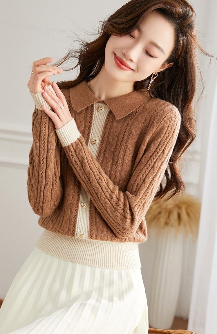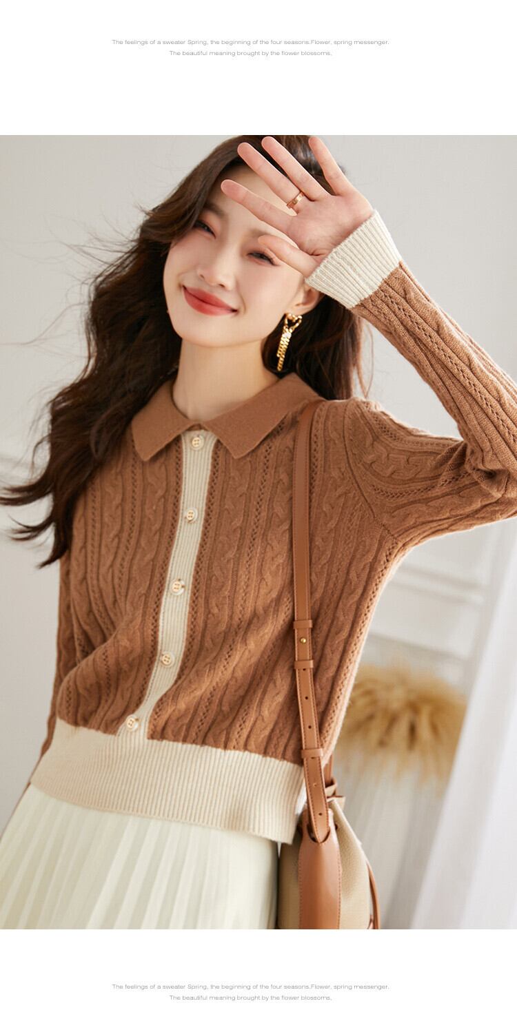 ポロ ラペル ウール セーターツイスト ショート セーター 女性 秋 冬 アウターウェア シャツ ベージュ ブラウン ブラック M L XL トップス 袖あり かわいい 大人可愛い きれいめ シンプル カジュアル 大人 上品 おしゃれ お洒落 大人可愛い 大人女子 キュート 春 夏 秋 10代 20代 30代 レディース 女性用 女の子 通勤 学生 通学 デート お出かけ 女子会 お泊まり 休日 パーティー イベント 旅行 普段使い ファッション コーデ スタイル インスタ映え 色展開
