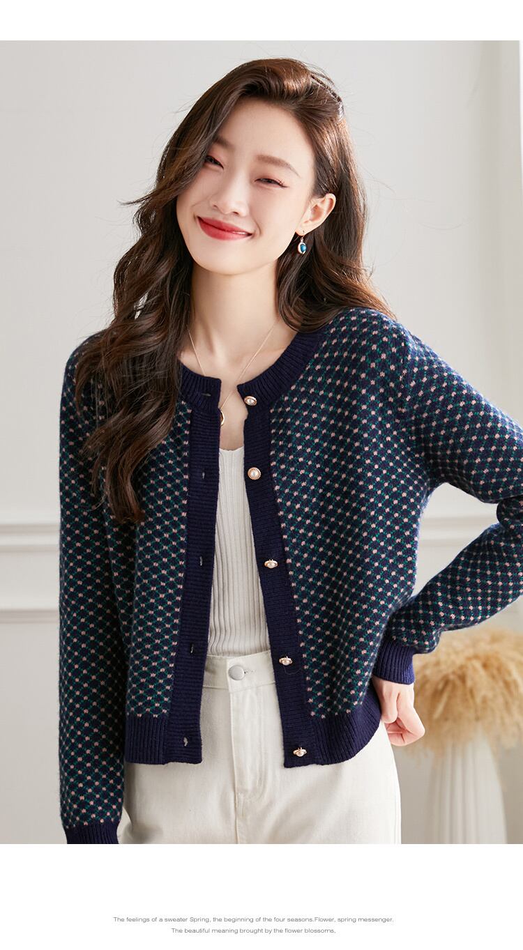 ピュア ウール ニット カーディガン レディース 秋 セレブ スタイル ジャカード ショート スタイル 薄手 セーター ジャケット付き ネイビー M L XL トップス 袖あり かわいい 大人可愛い きれいめ シンプル カジュアル 大人 上品 おしゃれ お洒落 大人可愛い 大人女子 キュート 春 夏 秋 10代 20代 30代 レディース 女性用 女の子 通勤 学生 通学 デート お出かけ 女子会 お泊まり 休日 パーティー イベント 旅行 普段使い ファッション コーデ スタイル インスタ映え | ameiro18