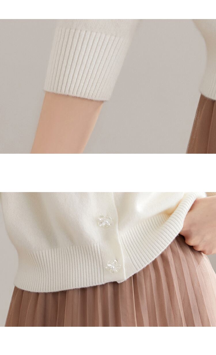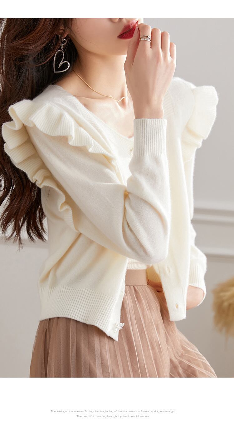 あなたのスタイルやファッションコーディネートにさりげなく華やかな印象を与え、自信を持っておしゃれを楽しむことができます。このホワイトウールニットカーディガンで、毎日のコーディネートを楽しく、素敵に彩ってください。