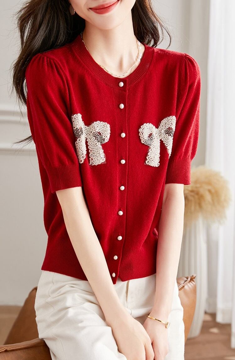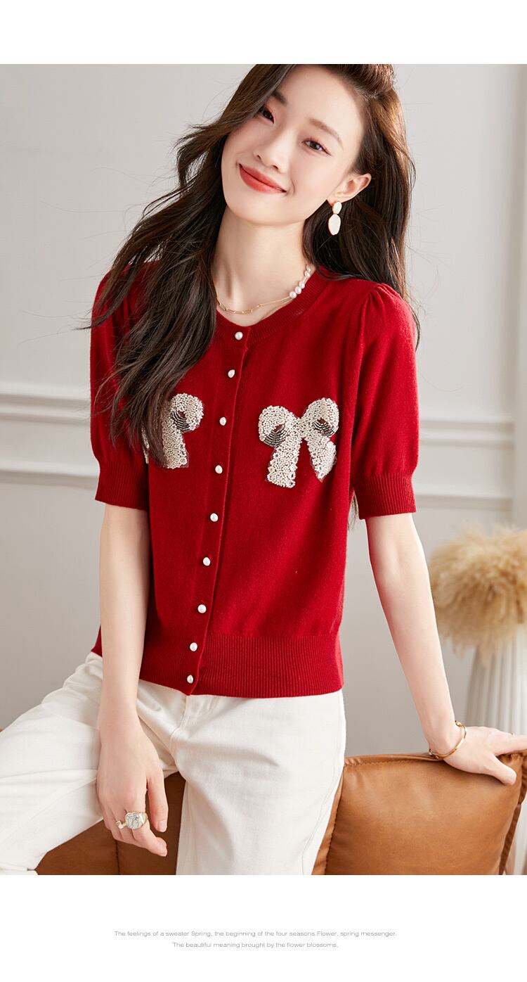 秋 半袖 ピュア ウール ニット カーディガン レディース 春 秋 ショール レッド ショート ビーズ 薄手 セーター ジャケット レッド ネイビー ホワイト フリーサイズ トップス 袖あり かわいい 大人可愛い きれいめ シンプル カジュアル 大人 上品 おしゃれ お洒落 大人可愛い 大人女子 キュート 春 夏 秋 10代 20代 30代 レディース 女性用 女の子 通勤 学生 通学 デート お出かけ 女子会 お泊まり 休日 パーティー イベント 旅行 普段使い ファッション コーデ スタイル | ameiro18