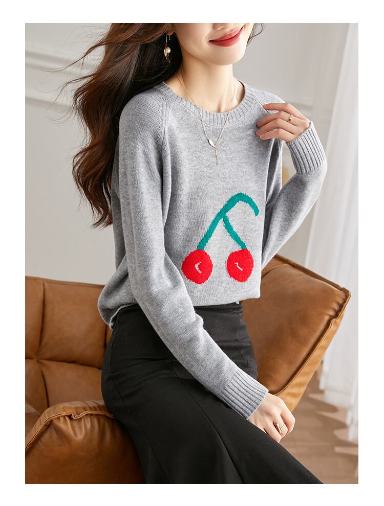 チェリー ジャカード ウール セーター レディース ピュア ウール 秋 冬 洋風 インナー ボトムス シャツ ショート セーター グレー フリーサイズ トップス 袖あり かわいい 大人可愛い きれいめ シンプル カジュアル 大人 上品 おしゃれ お洒落 大人可愛い 大人女子 キュート 春 夏 秋 10代 20代 30代 レディース 女性用 女の子 通勤 学生 通学 デート お出かけ 女子会 お泊まり 休日 パーティー イベント 旅行 普段使い ファッション コーデ スタイル インスタ映え 色展開