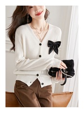 ちょう結び エレガント ウール ニット カーディガン 女性 秋 セーター ショート コート v ネック トップ ホワイト フリーサイズ トップス 袖あり かわいい 大人可愛い きれいめ シンプル カジュアル 大人 上品 おしゃれ お洒落 大人可愛い 大人女子 キュート 春 夏 秋 10代 20代 30代 レディース 女性用 女の子 通勤 学生 通学 デート お出かけ 女子会 お泊まり 休日 パーティー イベント 旅行 普段使い ファッション コーデ スタイル インスタ映え