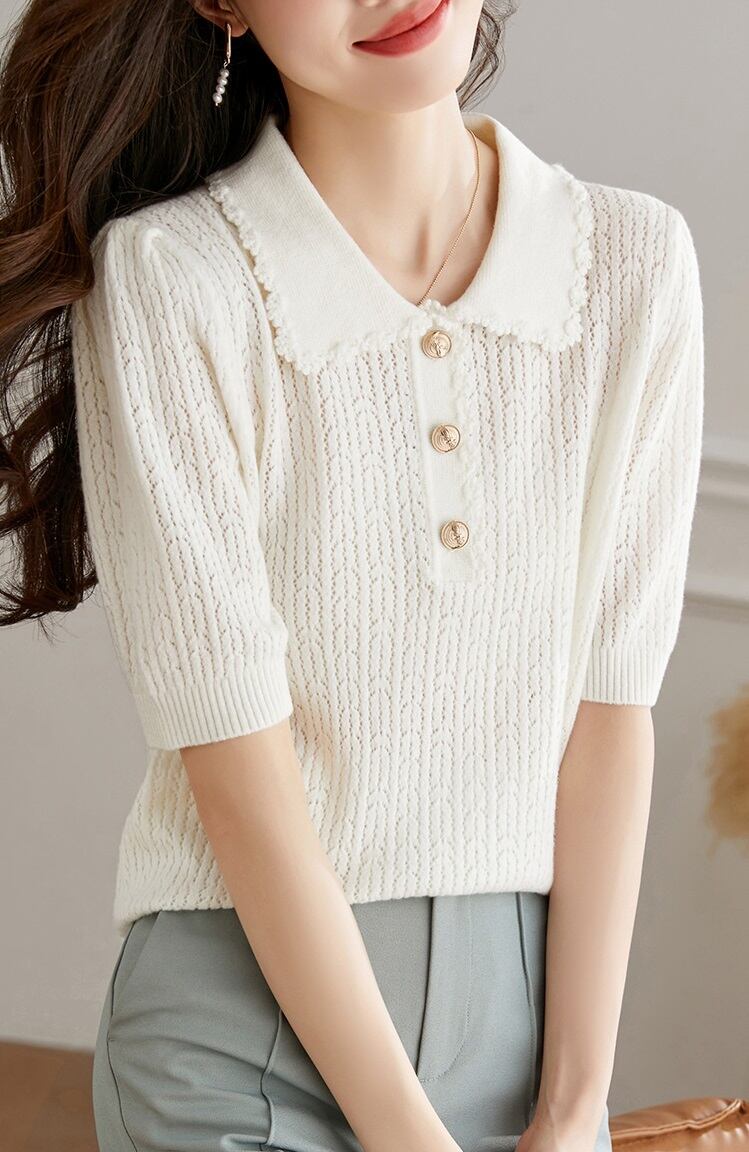 エレガント ポロ襟 ウール セーター 女性 秋 冬 薄い セクション 半袖 tシャツ セクション トップ ホワイト ブラック フリーサイズ トップス 袖あり かわいい 大人可愛い きれいめ シンプル カジュアル 大人 上品 おしゃれ お洒落 大人可愛い 大人女子 キュート 春 夏 秋 10代 20代 30代 レディース 女性用 女の子 通勤 学生 通学 デート お出かけ 女子会 お泊まり 休日 パーティー イベント 旅行 普段使い ファッション コーデ スタイル インスタ映え 色展開 | ameiro18