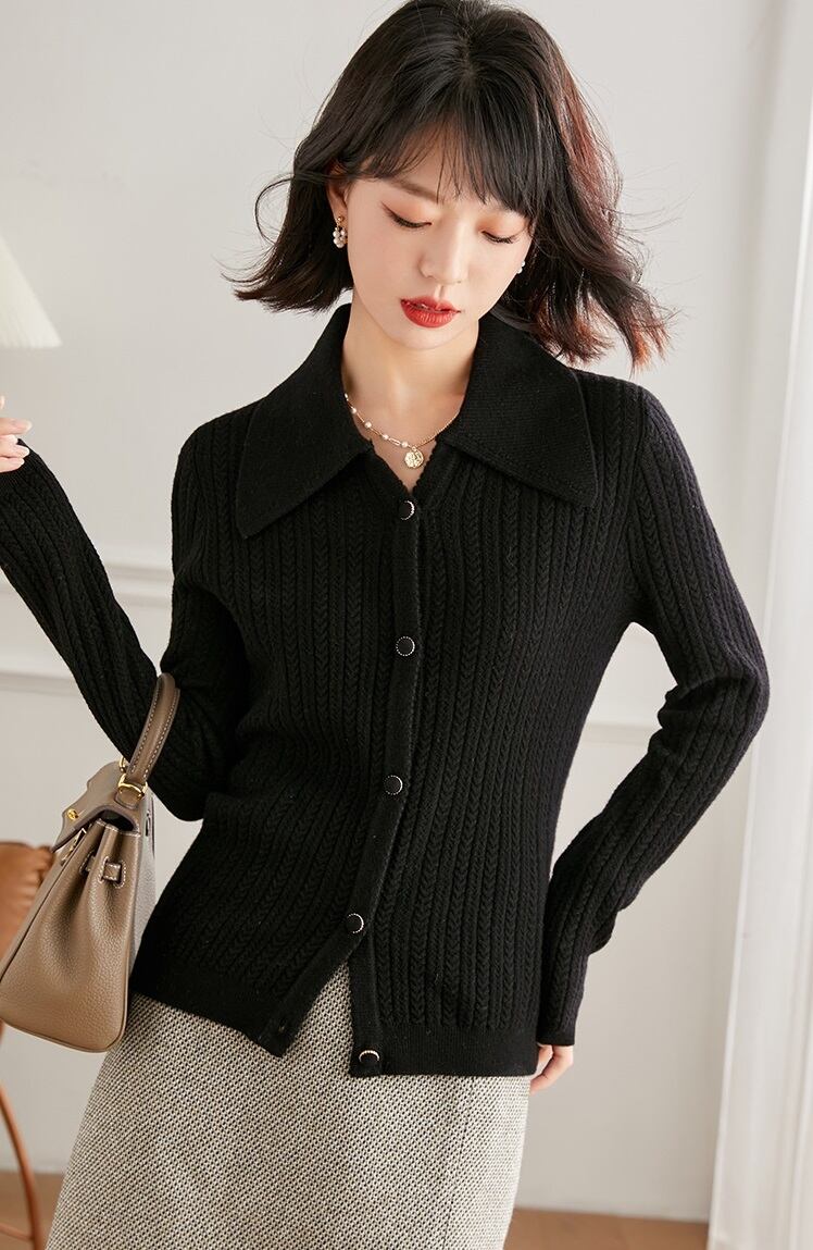 ピュア ウール ポロ ラペル ニット カーディガン ジャケット レディース 秋薄手 スリム ショート トップ ホワイト ブラック M L XL トップス 袖あり かわいい 大人可愛い きれいめ シンプル カジュアル 大人 上品 おしゃれ お洒落 大人可愛い 大人女子 キュート 春 夏 秋 10代 20代 30代 レディース 女性用 女の子 通勤 学生 通学 デート お出かけ 女子会 お泊まり 休日 パーティー イベント 旅行 普段使い ファッション コーデ スタイル インスタ映え 色展開