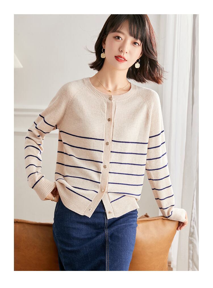 おしゃれで大人可愛いピュア ウール ストライプ ニット カーディガンで、自分らしいスタイルを演出しましょう。